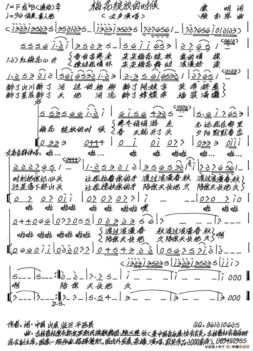 致谢:《中国曲谱网》衷心感谢作者老师馈赠原版歌谱!