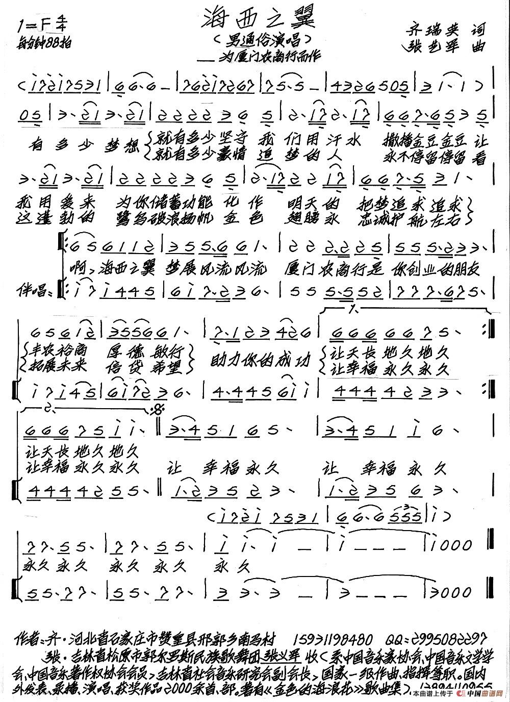 致谢:《中国曲谱网》衷心感谢作者老师馈赠原版歌谱!