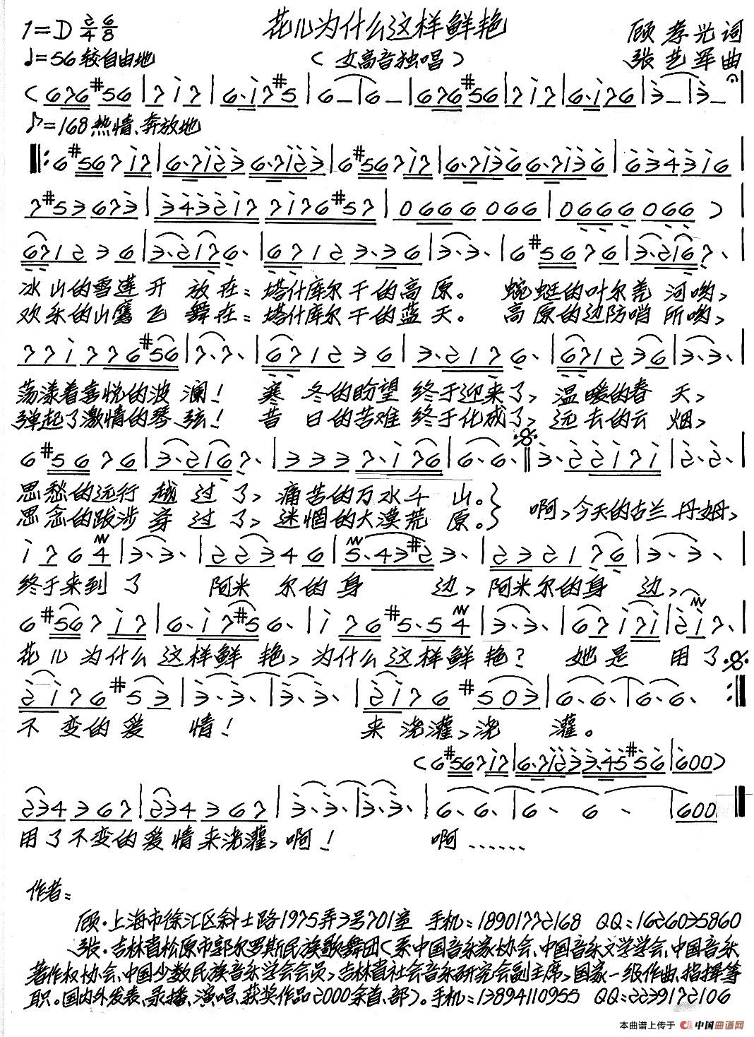 《永不离去的雪莲》组歌之三:《花儿为什么这样鲜艳》,为纪念我国杰出的电影音乐家雷振邦先生而作。