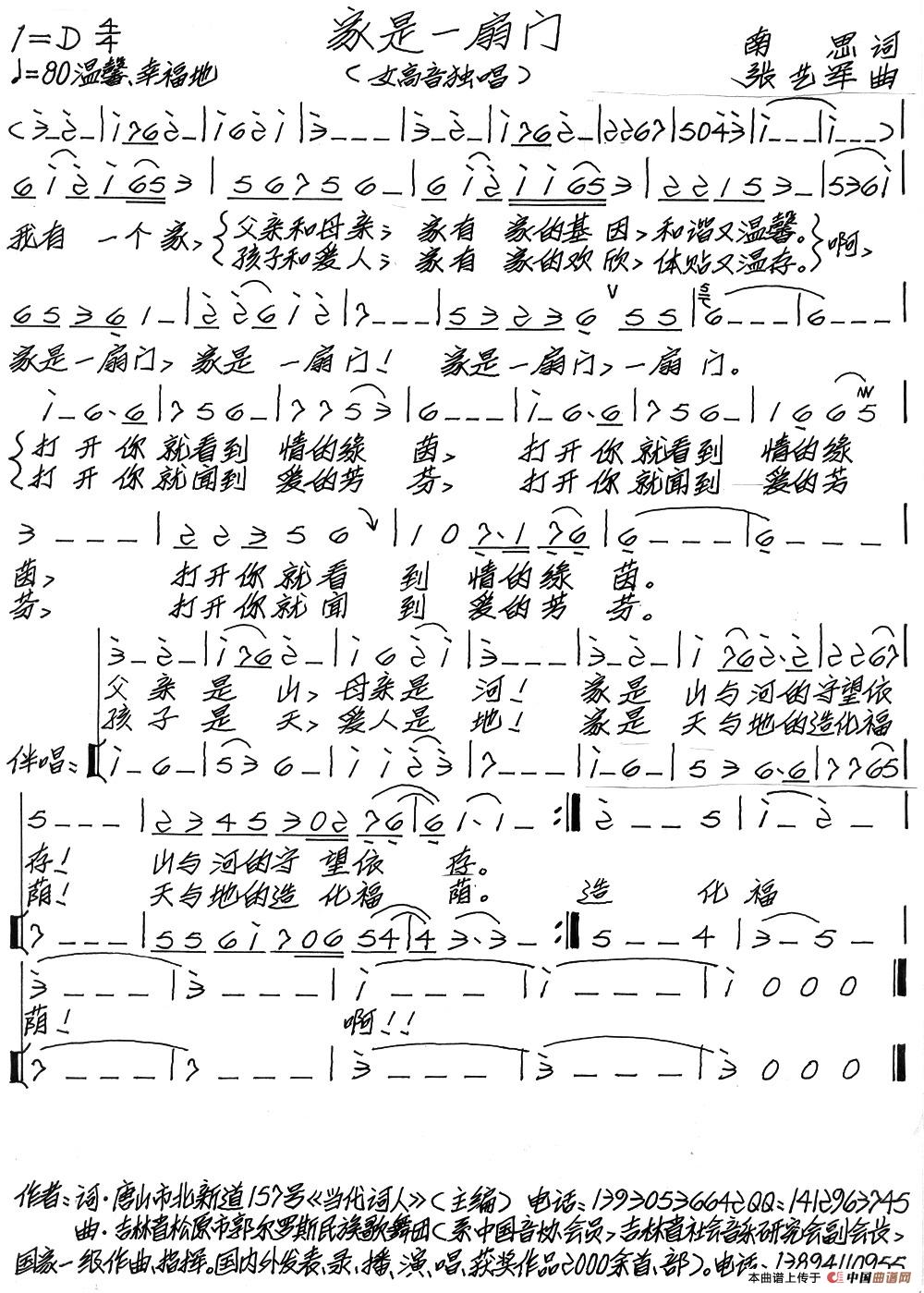 致谢:《中国曲谱网》衷心感谢作者老师馈赠原版歌谱!