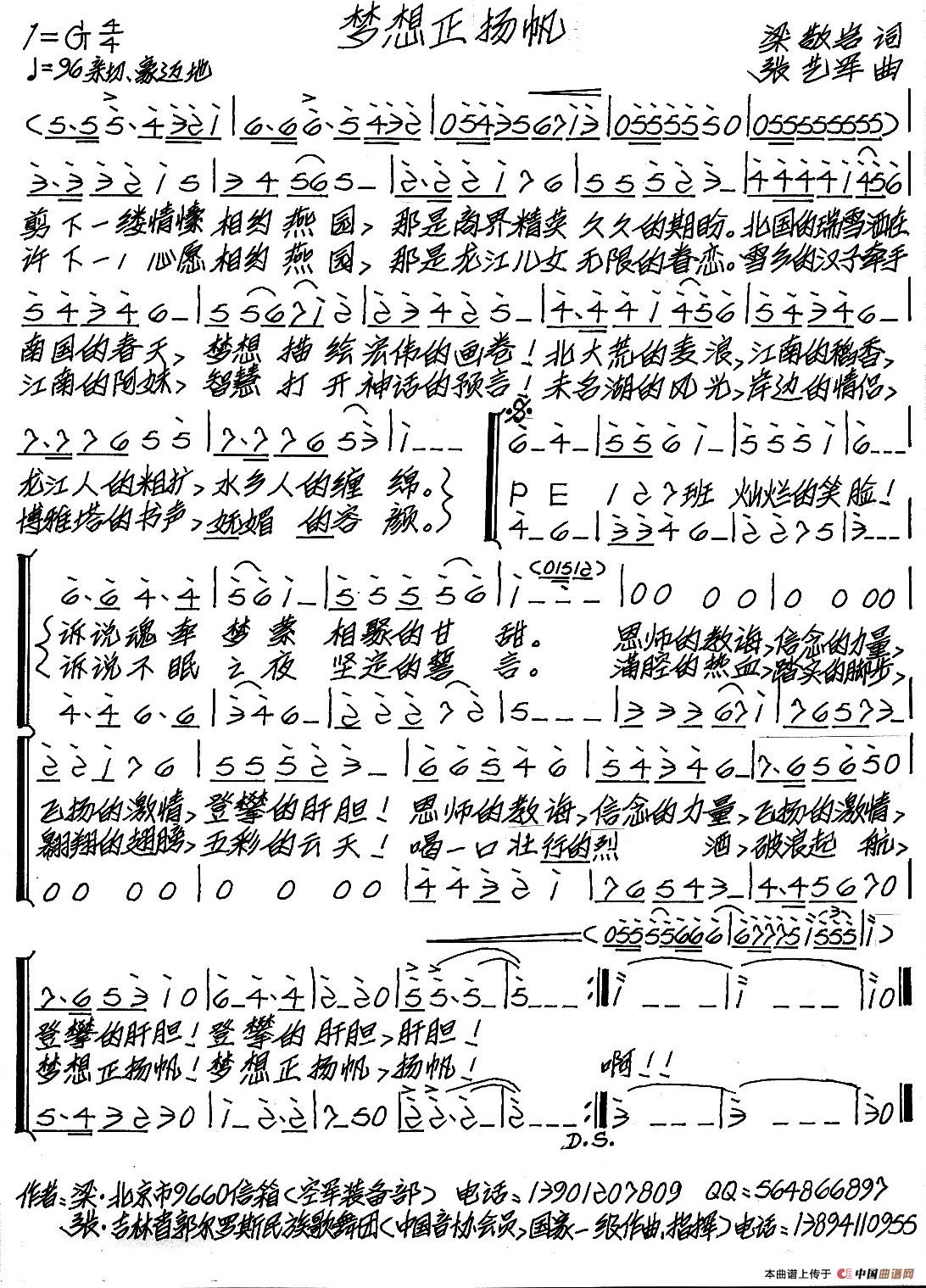 致谢:《中国曲谱网》衷心感谢作者老师馈赠原版歌谱!