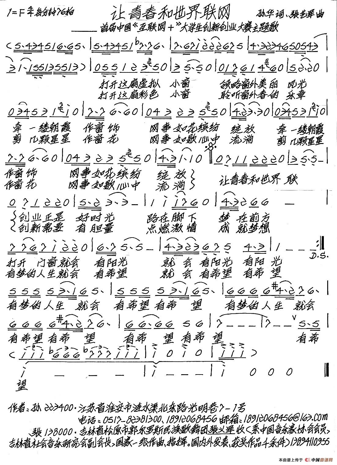 致谢:《中国曲谱网》衷心感谢作者老师馈赠原版歌谱!