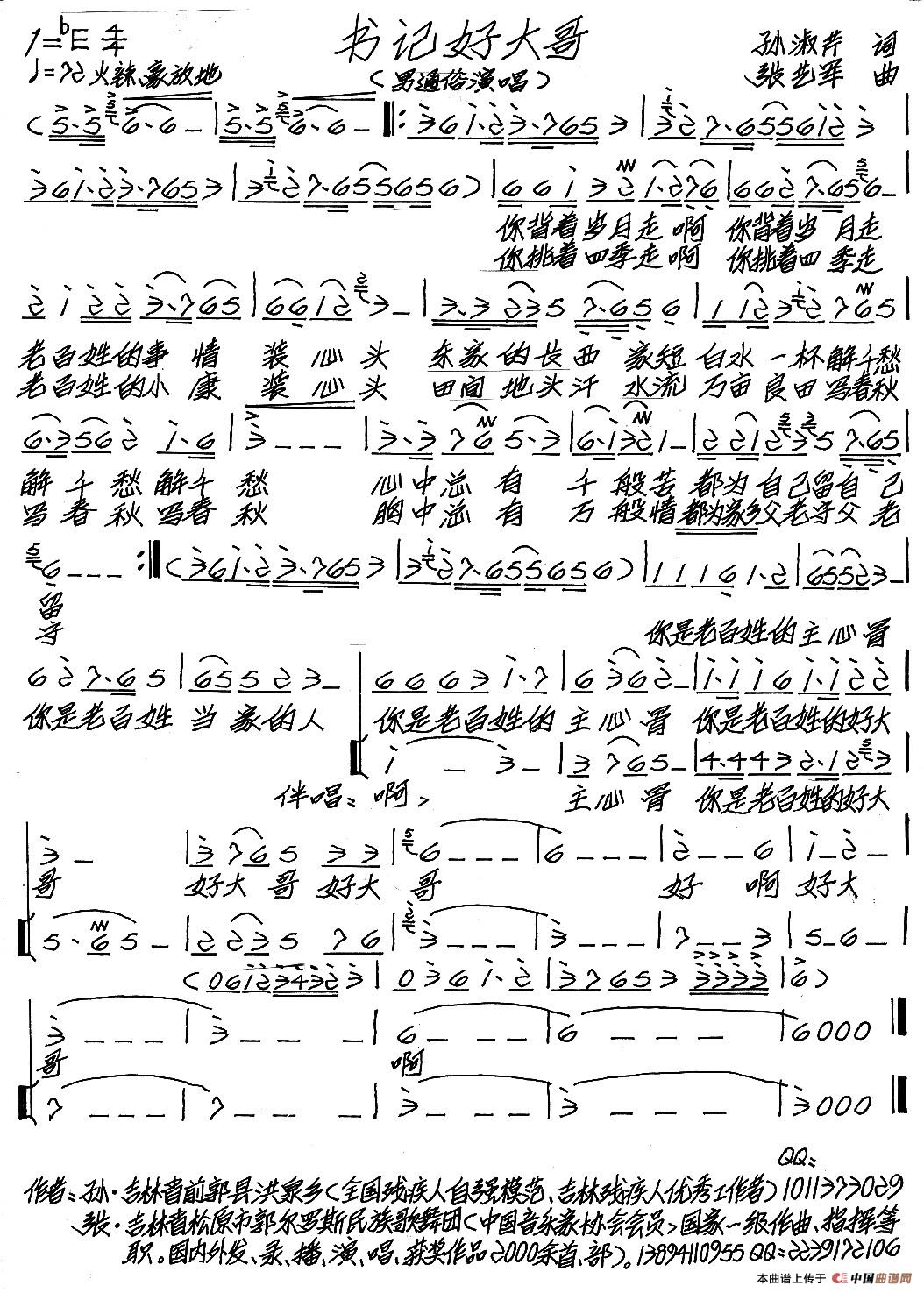 致谢:《中国曲谱网》衷心感谢作者老师馈赠原版歌谱!