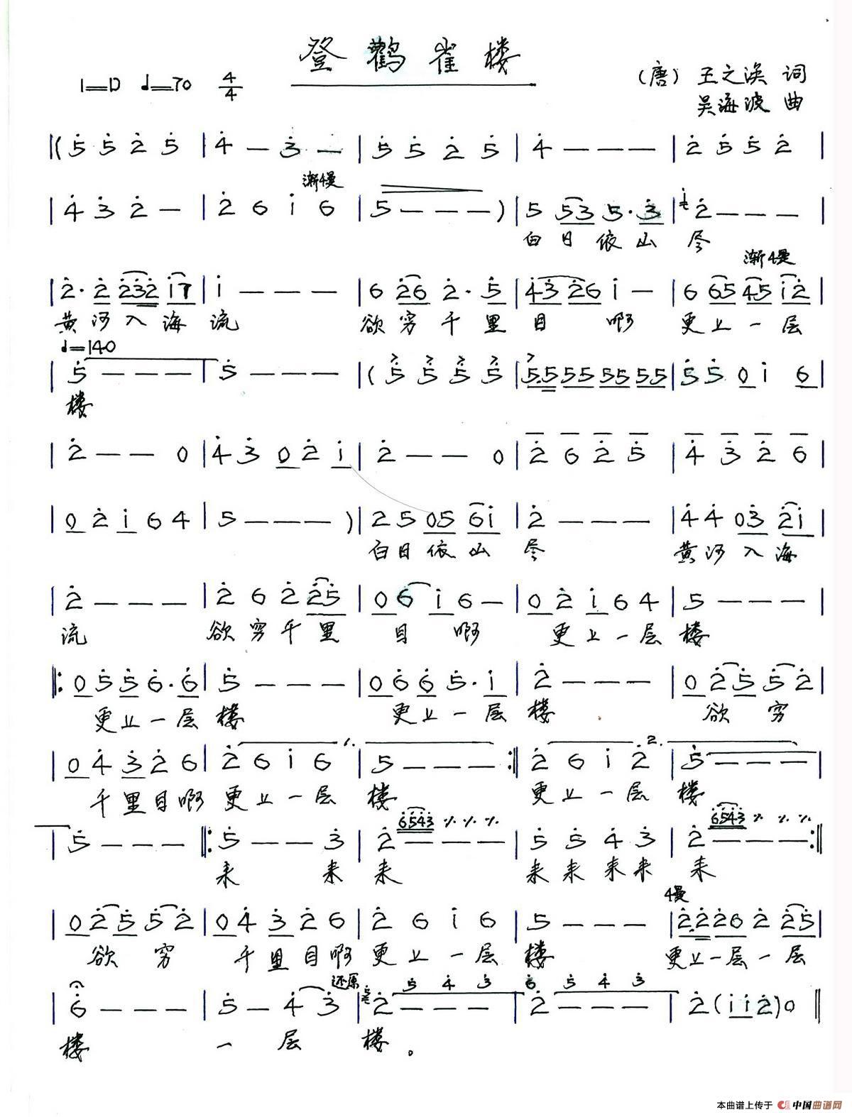 ![登鹳雀楼([唐]王之涣词 吴海波曲)(1)_原文件名:1.jpg](/Public/Uploads/2016/01/20/569f70c2d4f81.jpg)