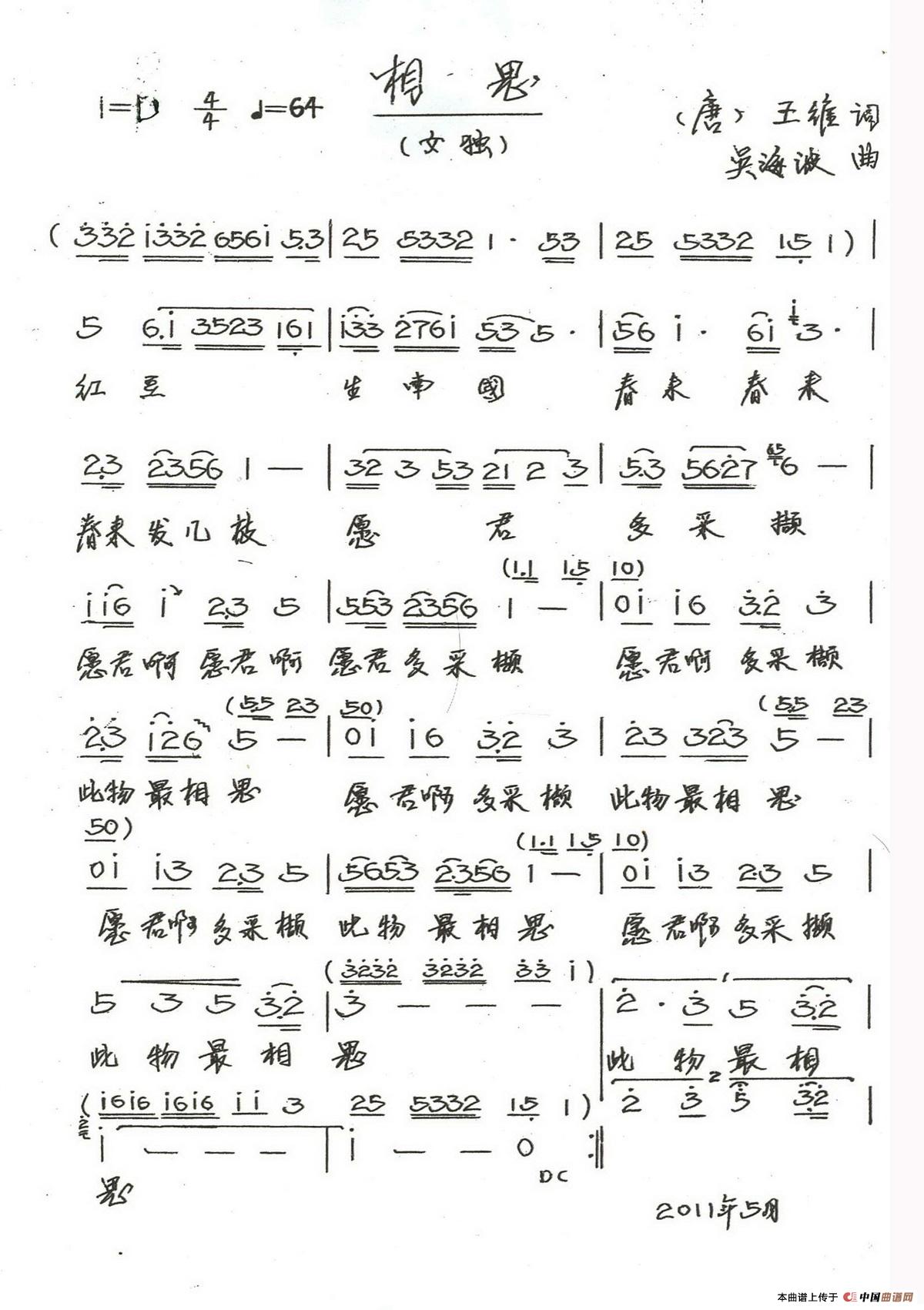 ![相思([唐]王维词 吴海波曲)(1)_原文件名:4.jpg](/Public/Uploads/2016/01/20/569f6f3e56e94.jpg)