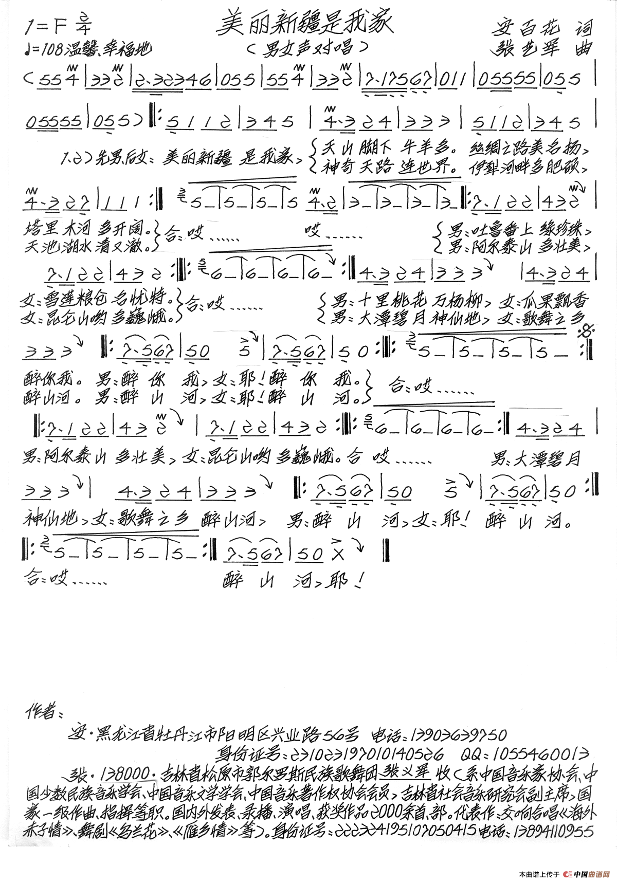 致谢:《中国曲谱网》衷心感谢作者老师馈赠原版歌谱!