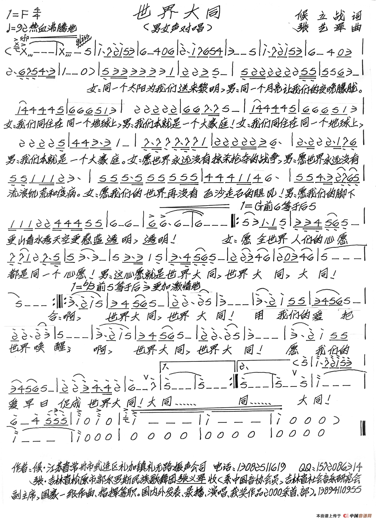 致谢:《中国曲谱网》衷心感谢作者老师馈赠原版歌谱!
