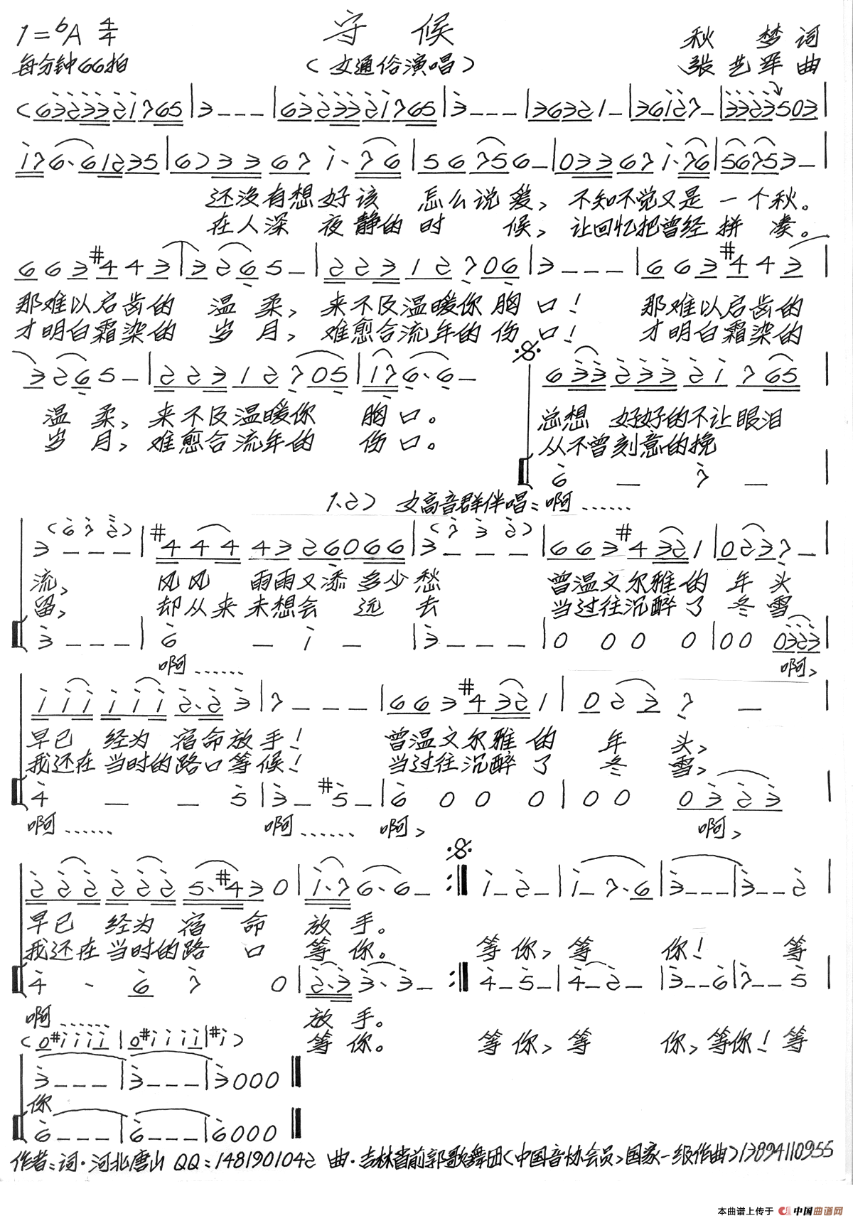 致谢:《中国曲谱网》衷心感谢作者老师馈赠原版歌谱!
