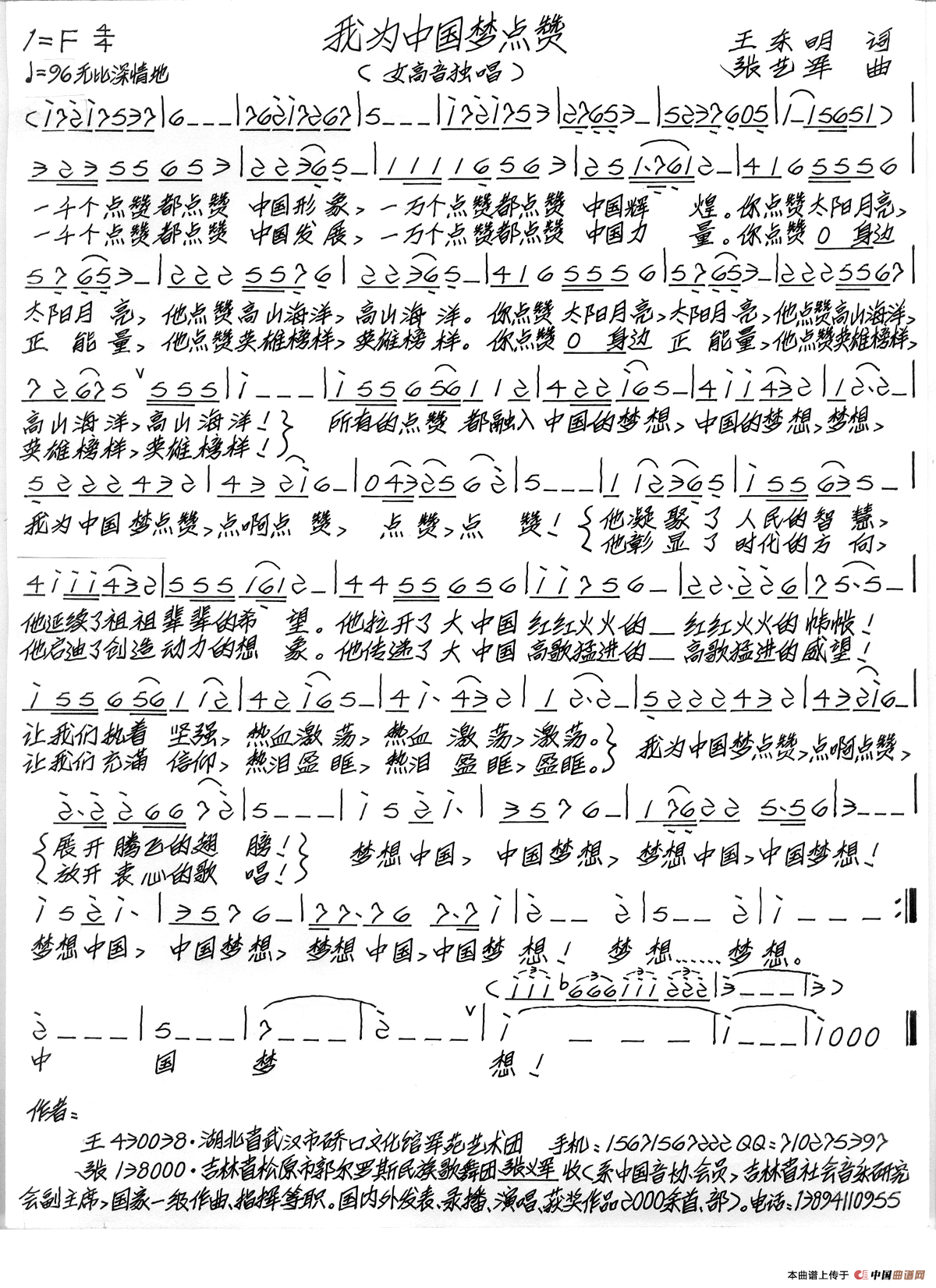 关于《我为中国梦点赞》曲谱的评论