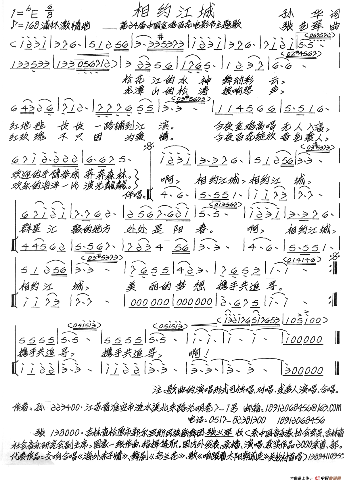 致谢:《中国曲谱网》衷心感谢作者老师馈赠原版歌谱!