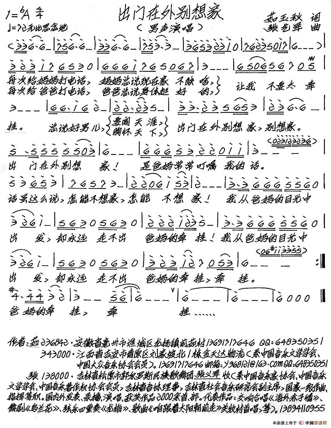 致谢:《中国曲谱网》衷心感谢作者老师馈赠原版歌谱!