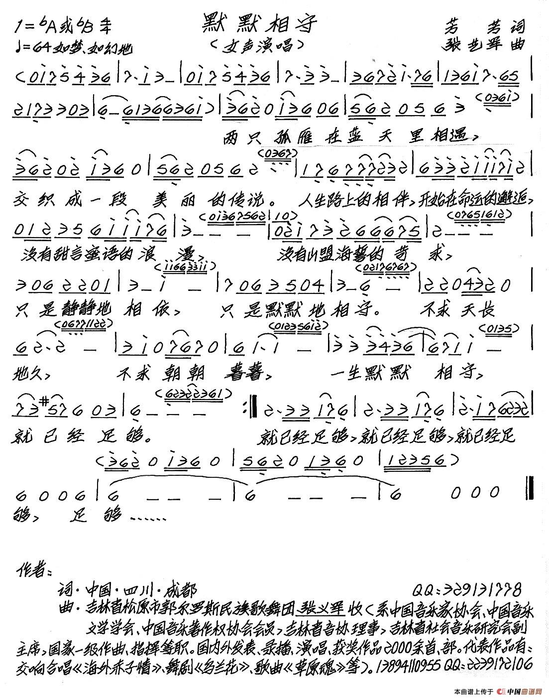 关于《默默相守》曲谱的评论