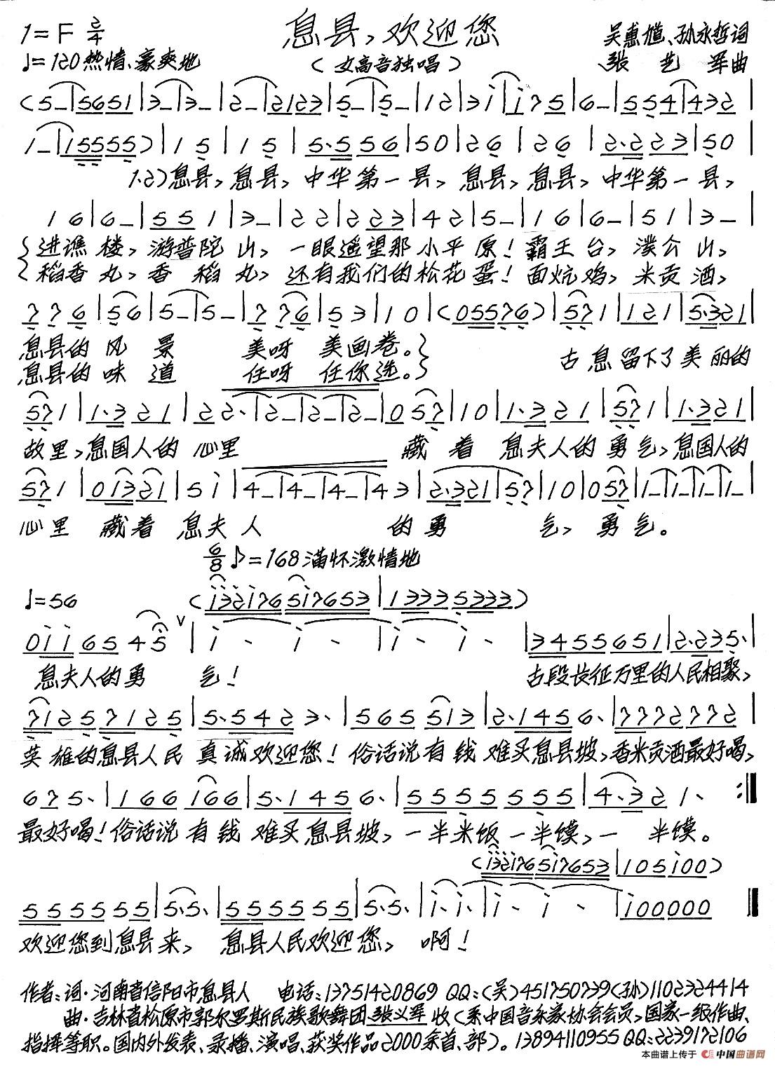 致谢:《中国曲谱网》衷心感谢作者老师馈赠原版歌谱!