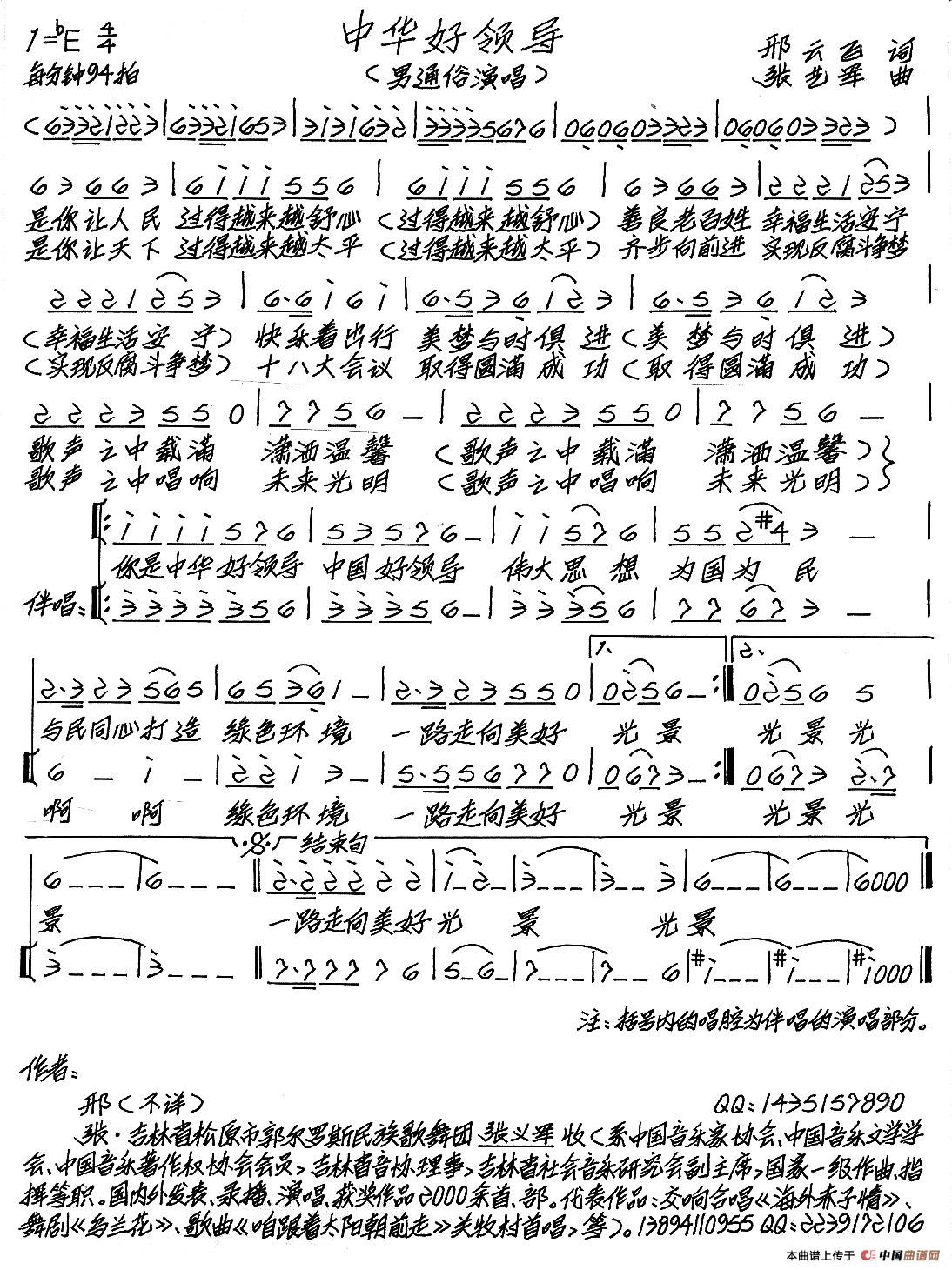 致谢:《中国曲谱网》衷心感谢作者老师馈赠原版歌谱!