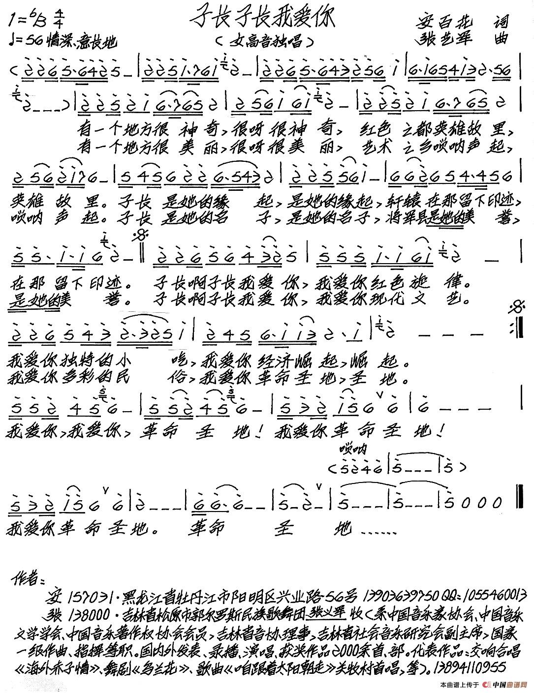 致谢:《中国曲谱网》衷心感谢作者老师馈赠原版歌谱!