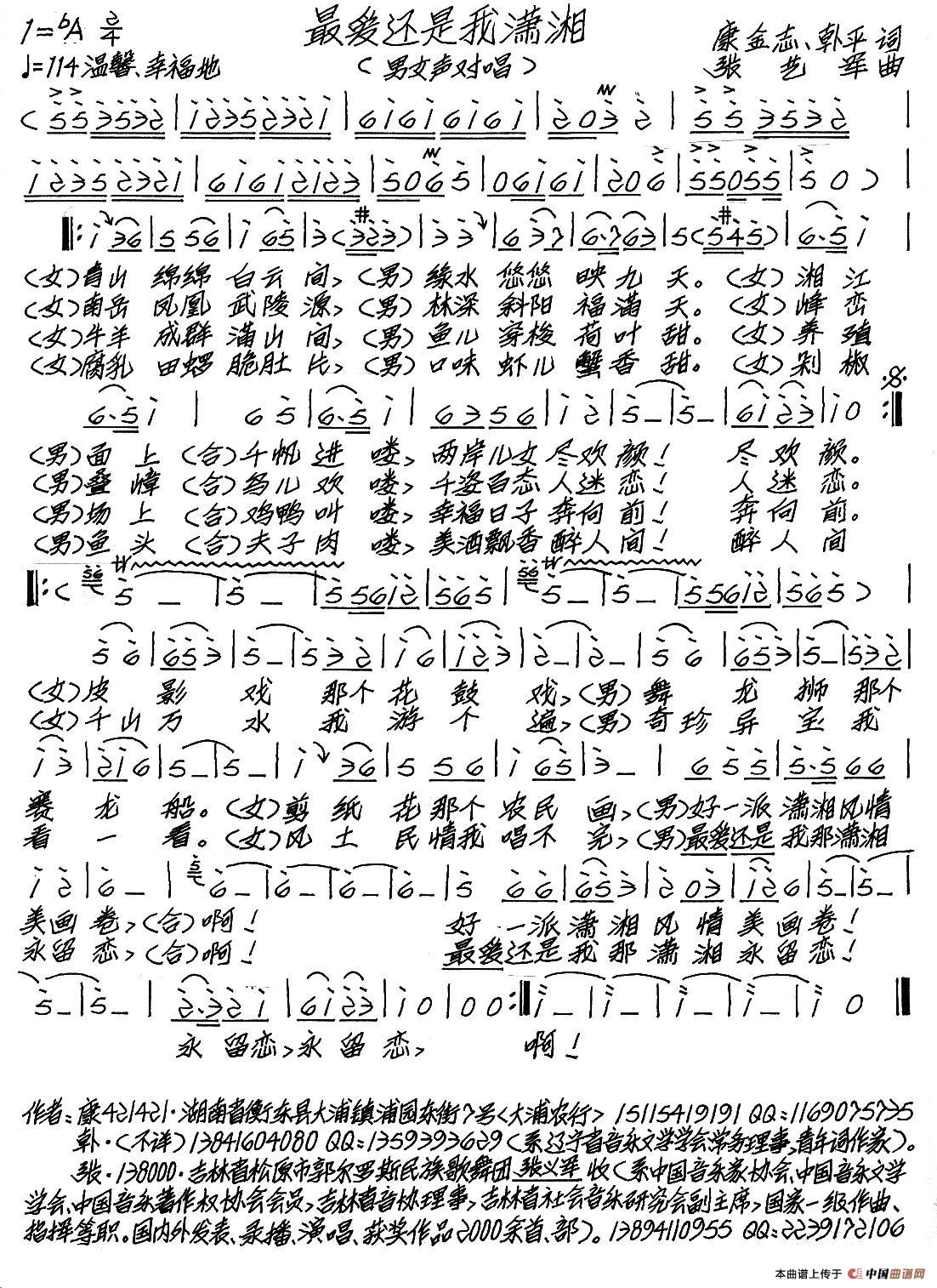 致谢:《中国曲谱网》衷心感谢作者老师馈赠原版歌谱!