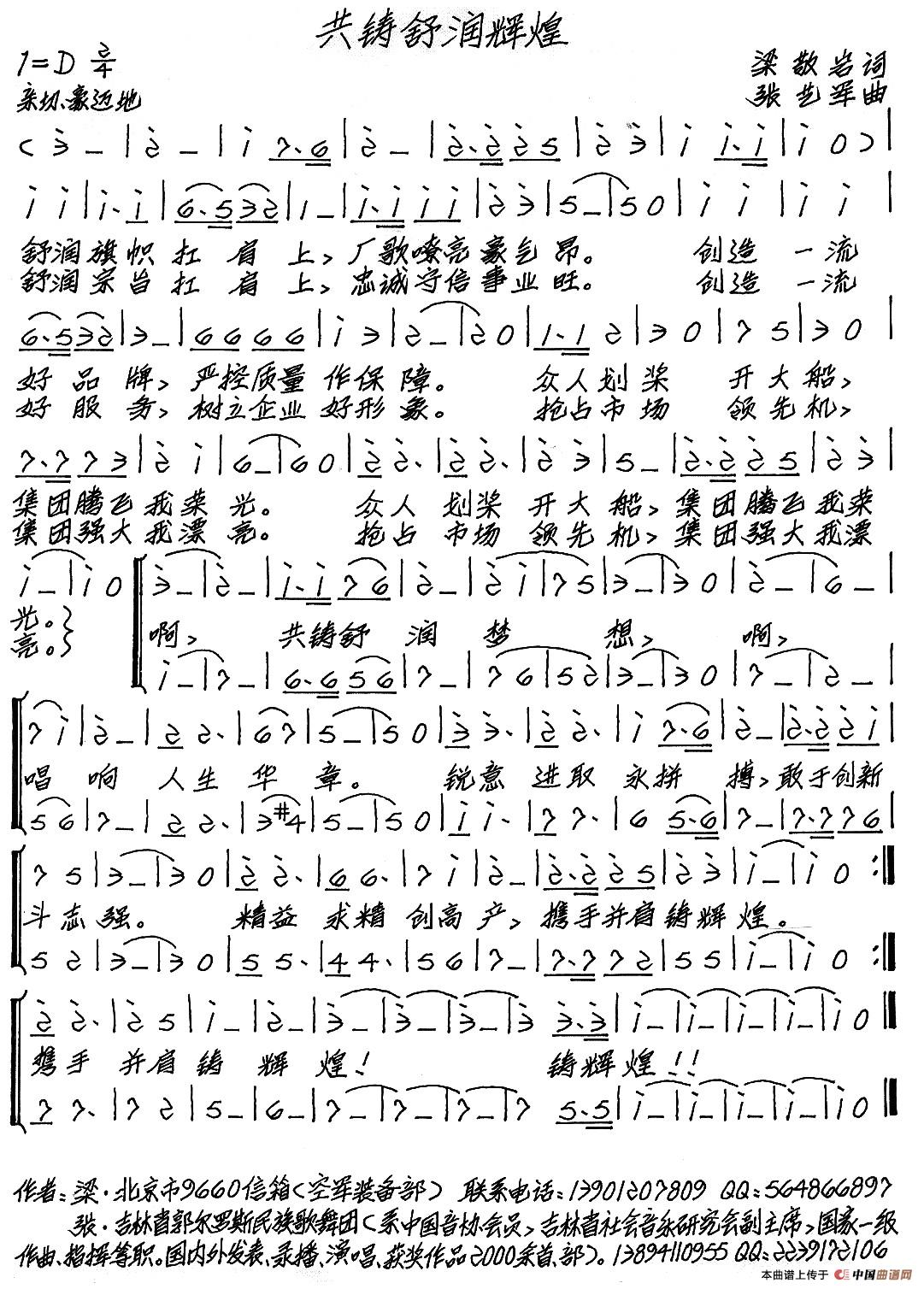 关于《共铸舒润辉煌》曲谱的评论