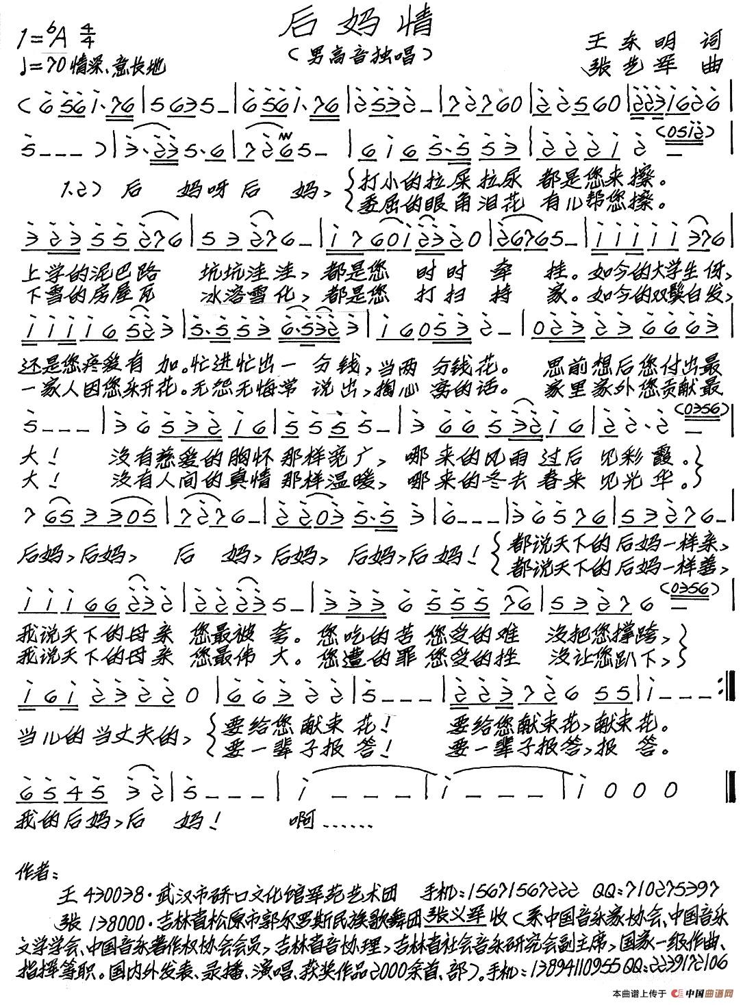 致谢:《中国曲谱网》衷心感谢作者老师馈赠原版歌谱!
