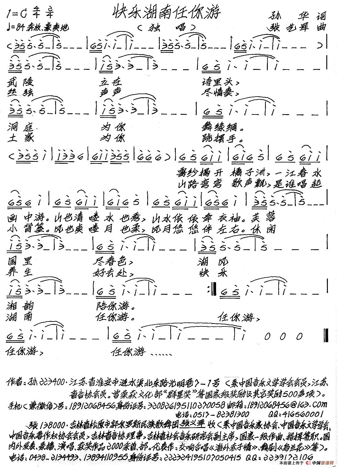 致谢:《中国曲谱网》衷心感谢作者老师馈赠原版歌谱!