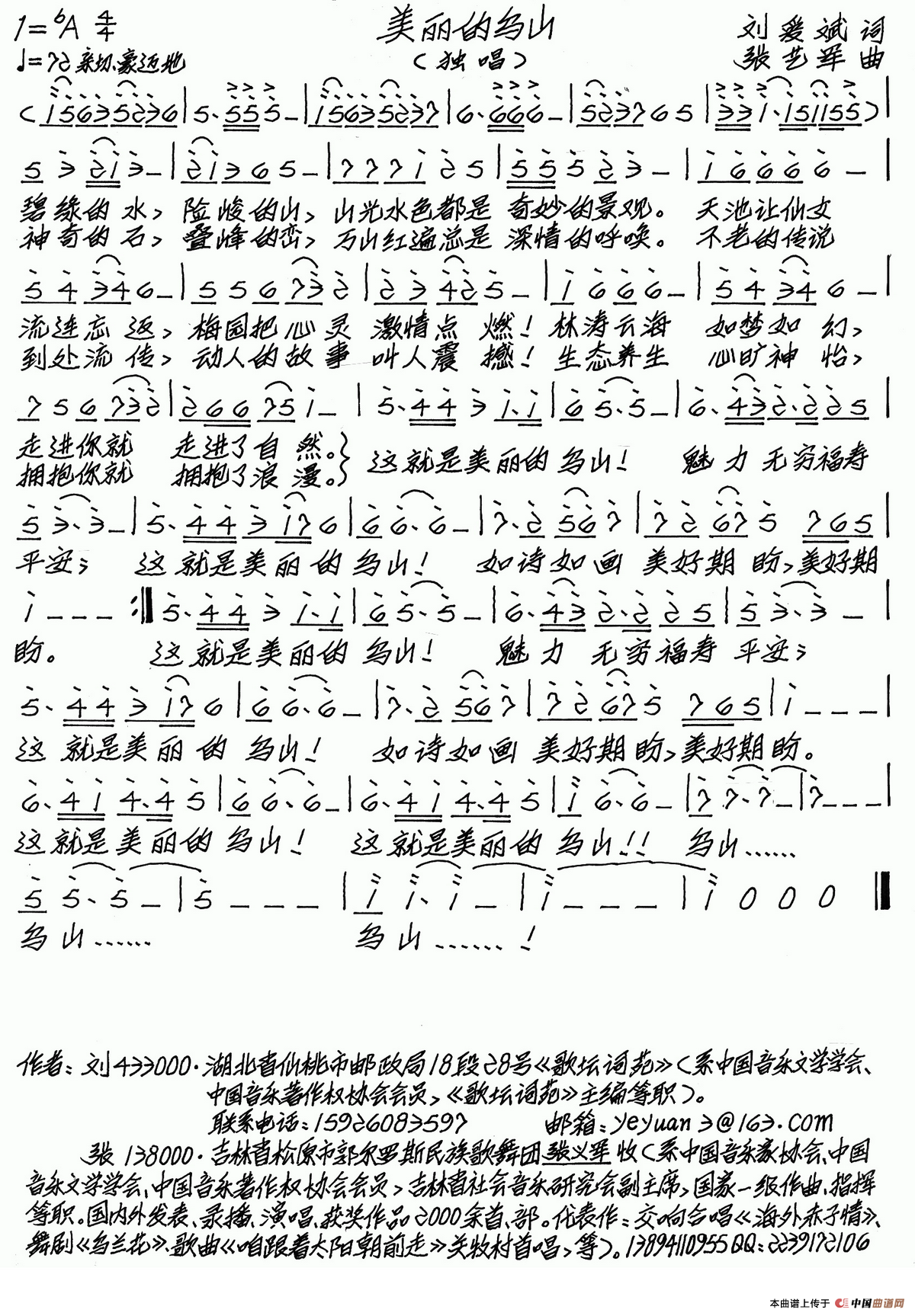 关于《美丽的乌山》曲谱的评论