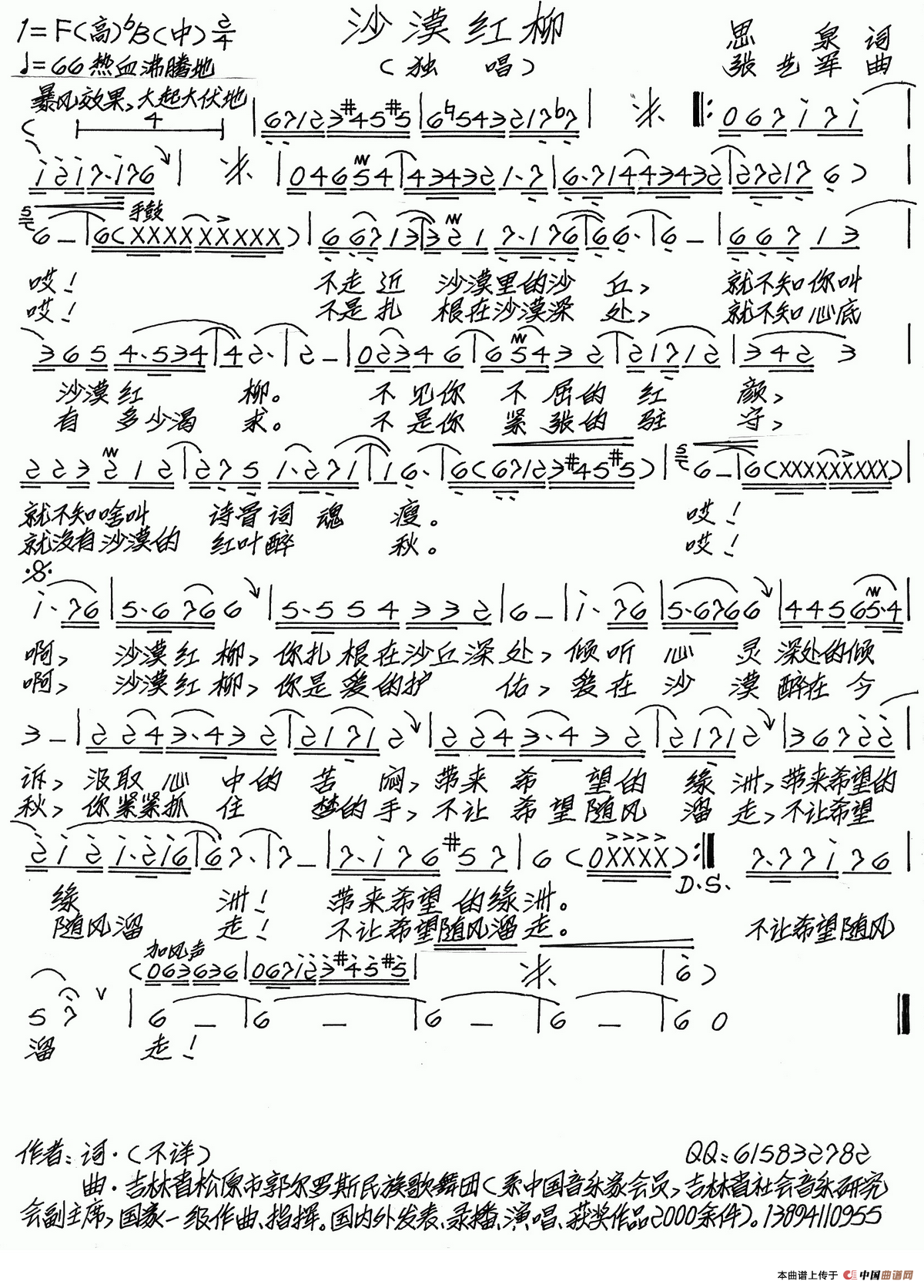 关于《沙漠红柳》曲谱的评论