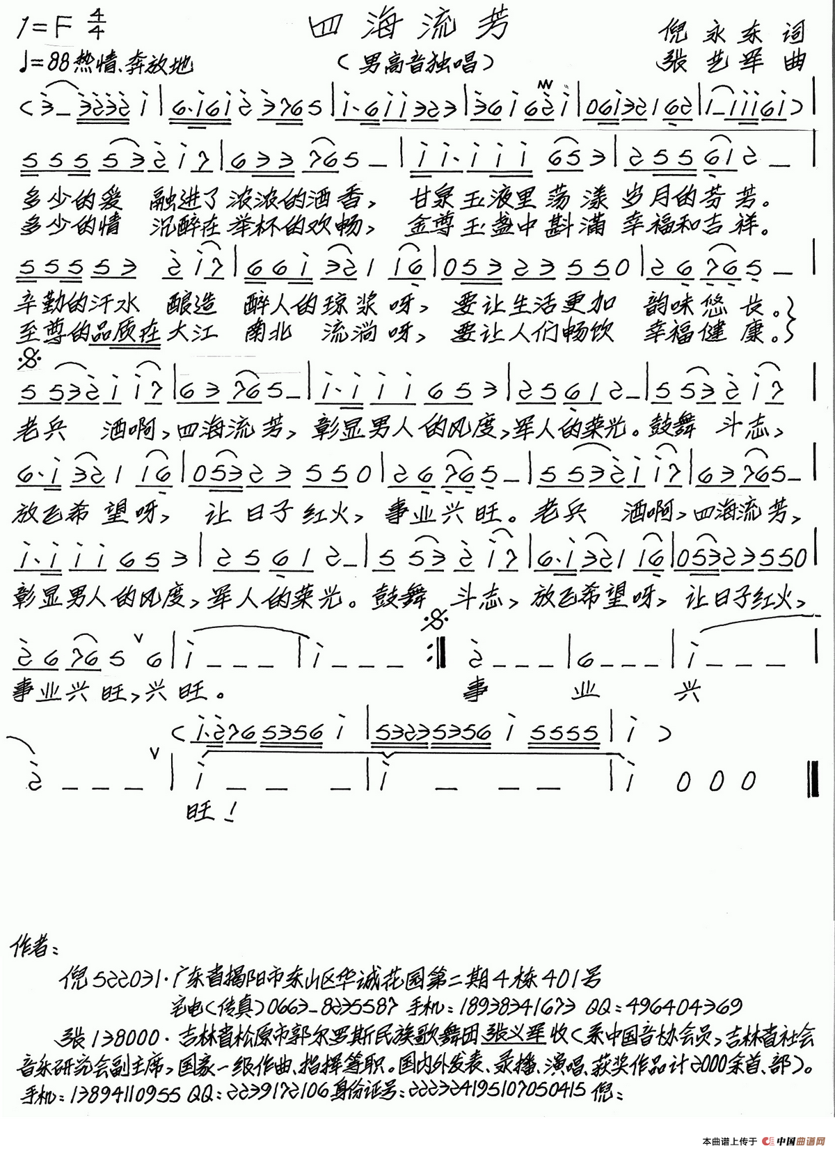 关于《四海流芳》曲谱的评论