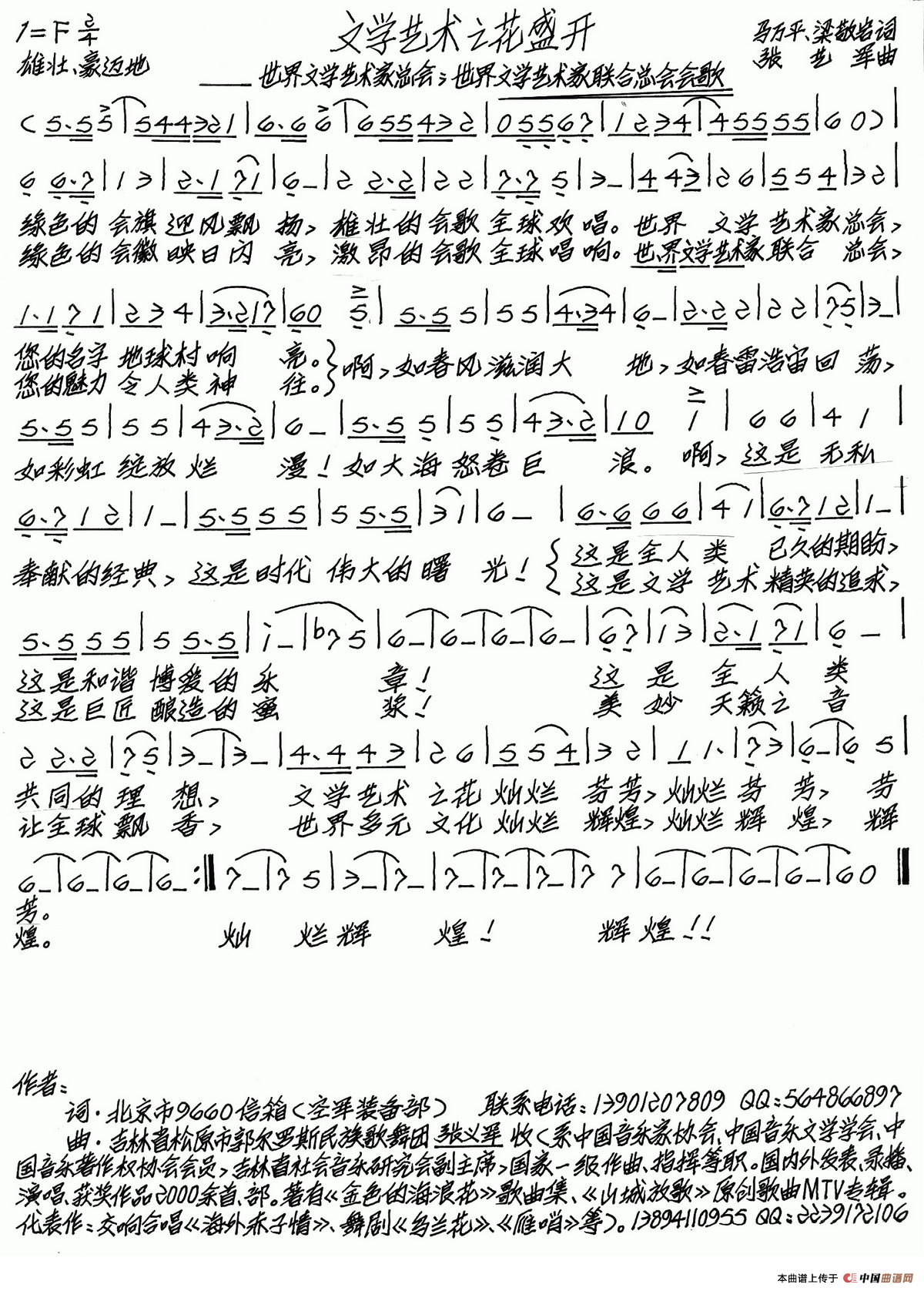 致谢:《中国曲谱网》衷心感谢作者老师馈赠原版歌谱!