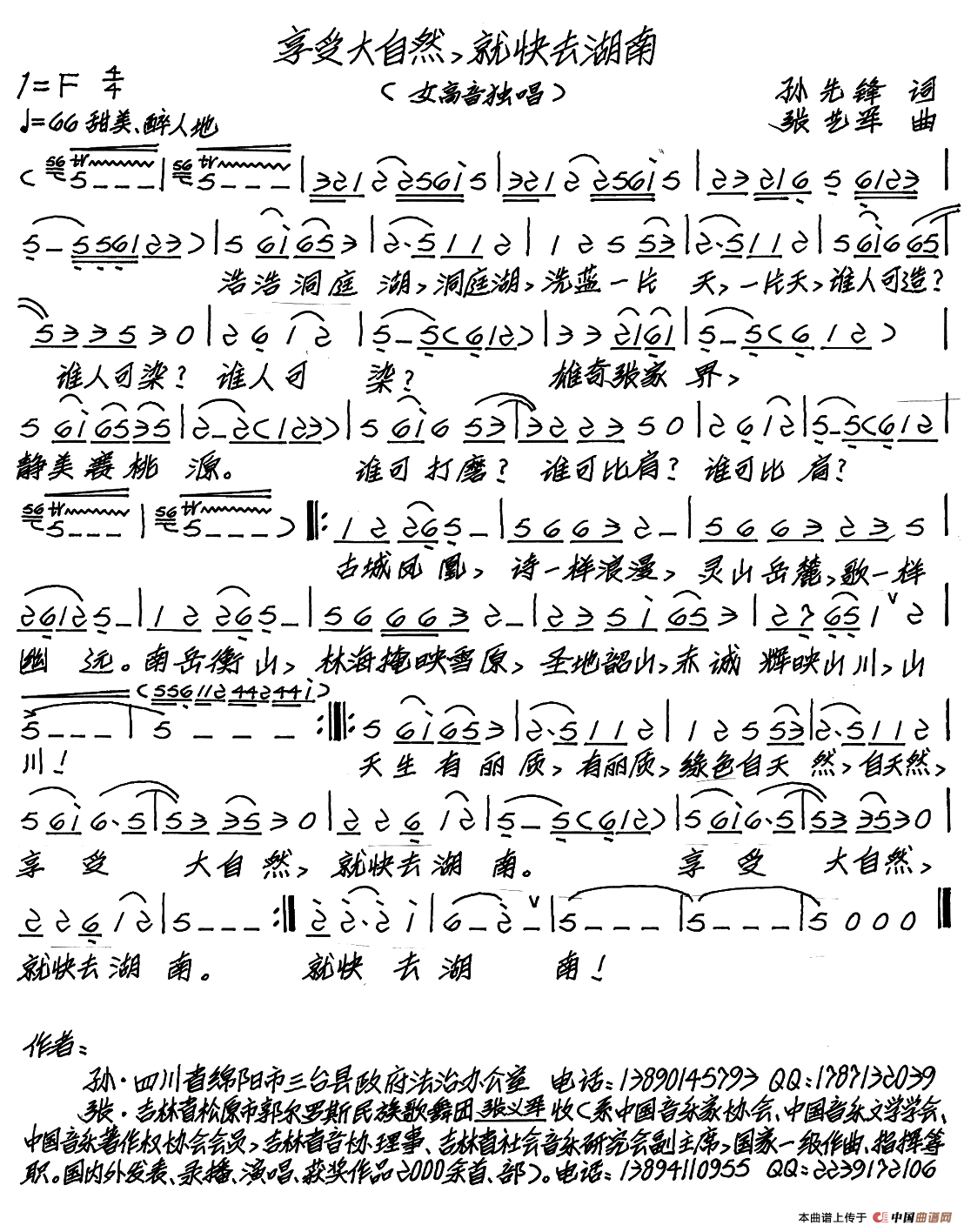 致谢:《中国曲谱网》衷心感谢作者老师馈赠原版歌谱!