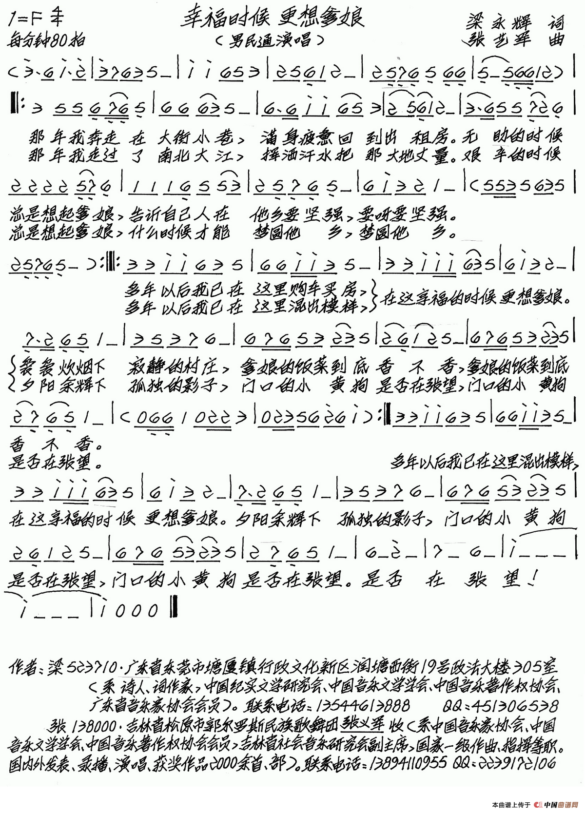 关于《幸福的时候,更想爹娘》曲谱的评论
