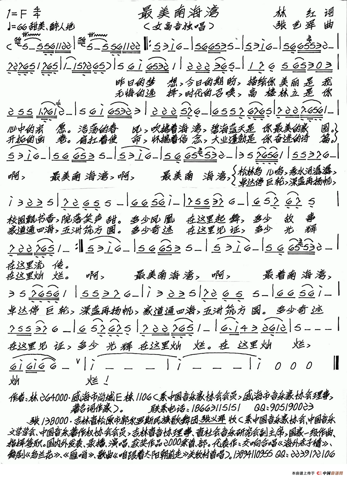 致谢:《中国曲谱网》衷心感谢作者老师馈赠原版歌谱!