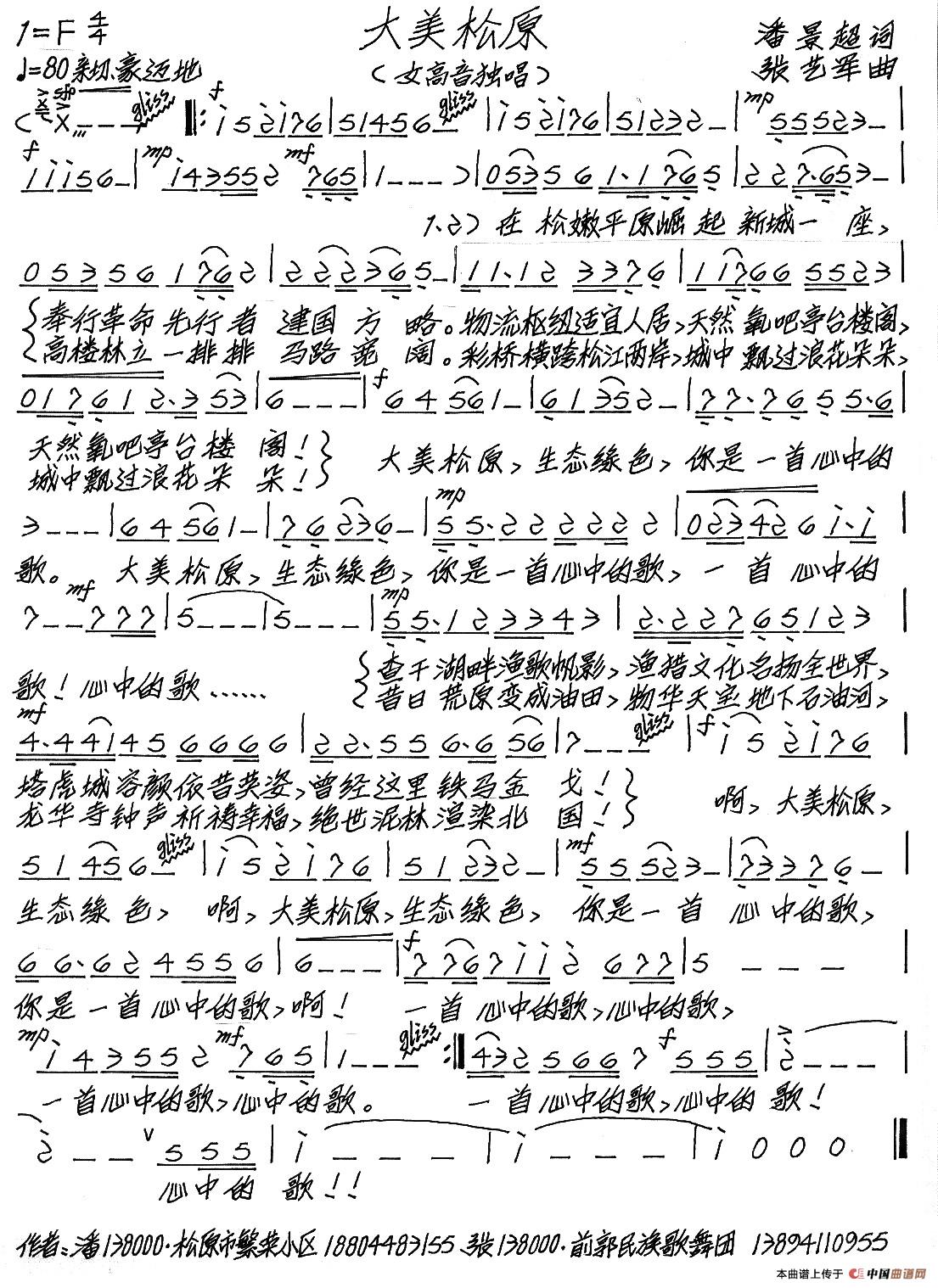 致谢:《中国曲谱网》衷心感谢作者老师馈赠原版歌谱!