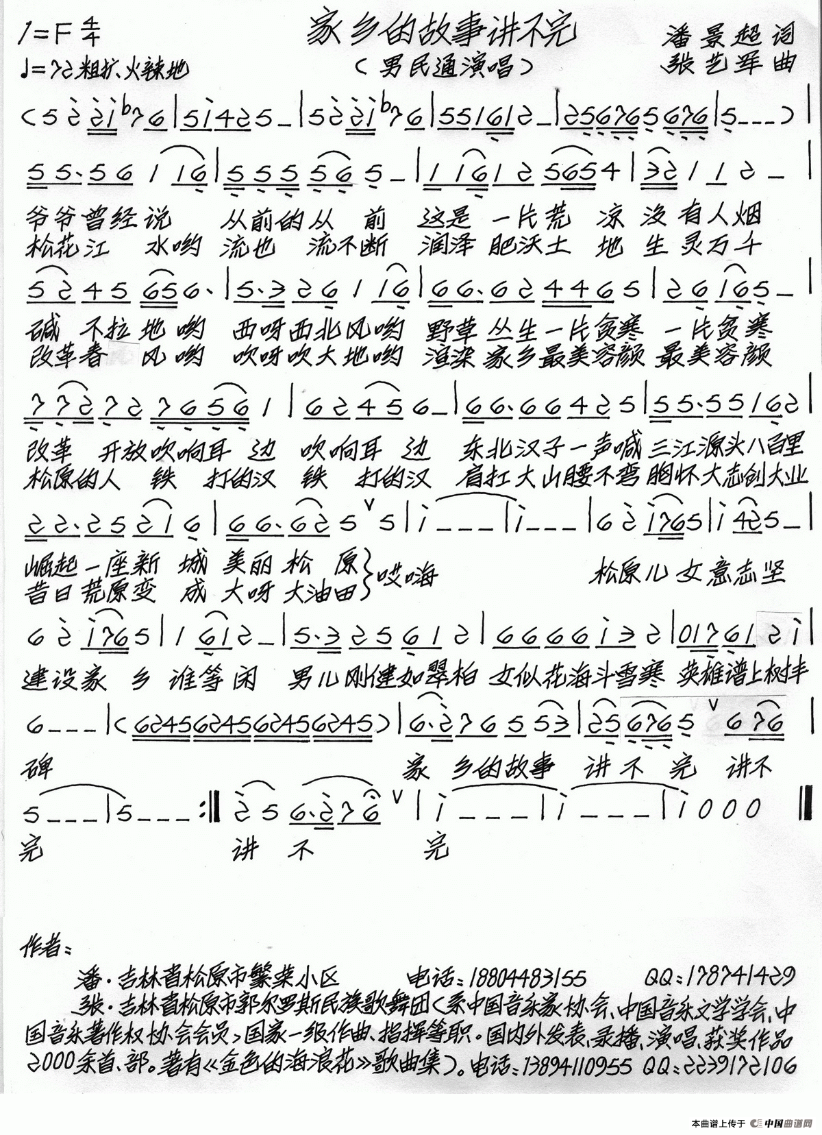 致谢:《中国曲谱网》衷心感谢作者老师馈赠原版歌谱!