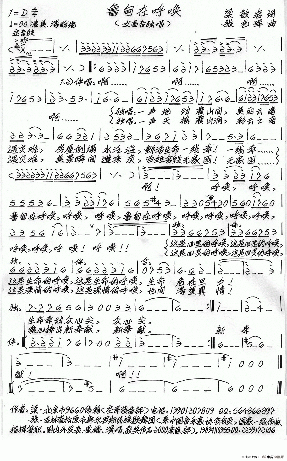 致谢:《中国曲谱网》衷心感谢作者老师馈赠原版歌谱!