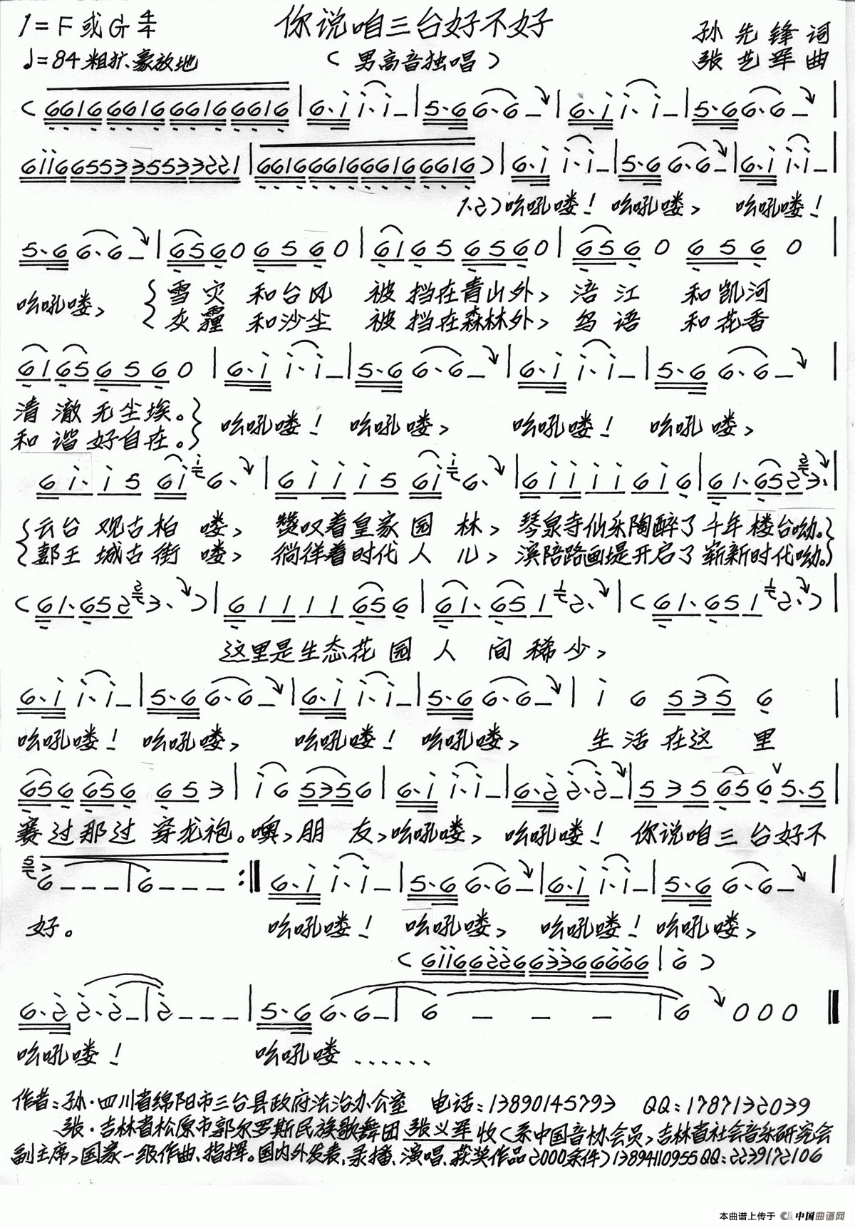致谢:《中国曲谱网》衷心感谢作者老师馈赠原版歌谱!