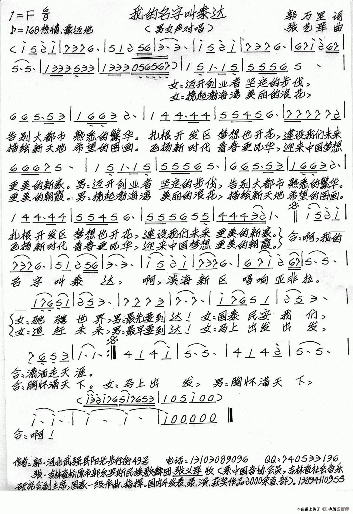 致谢:《中国曲谱网》衷心感谢作者老师馈赠原版歌谱!