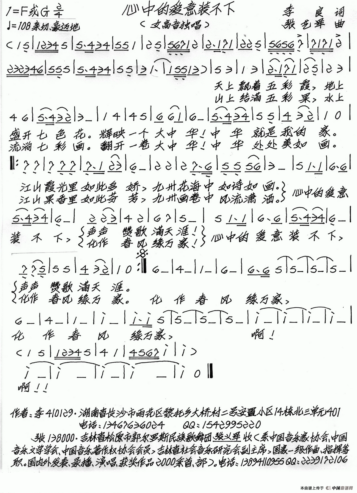 致谢:《中国曲谱网》衷心感谢作者老师馈赠原版歌谱!