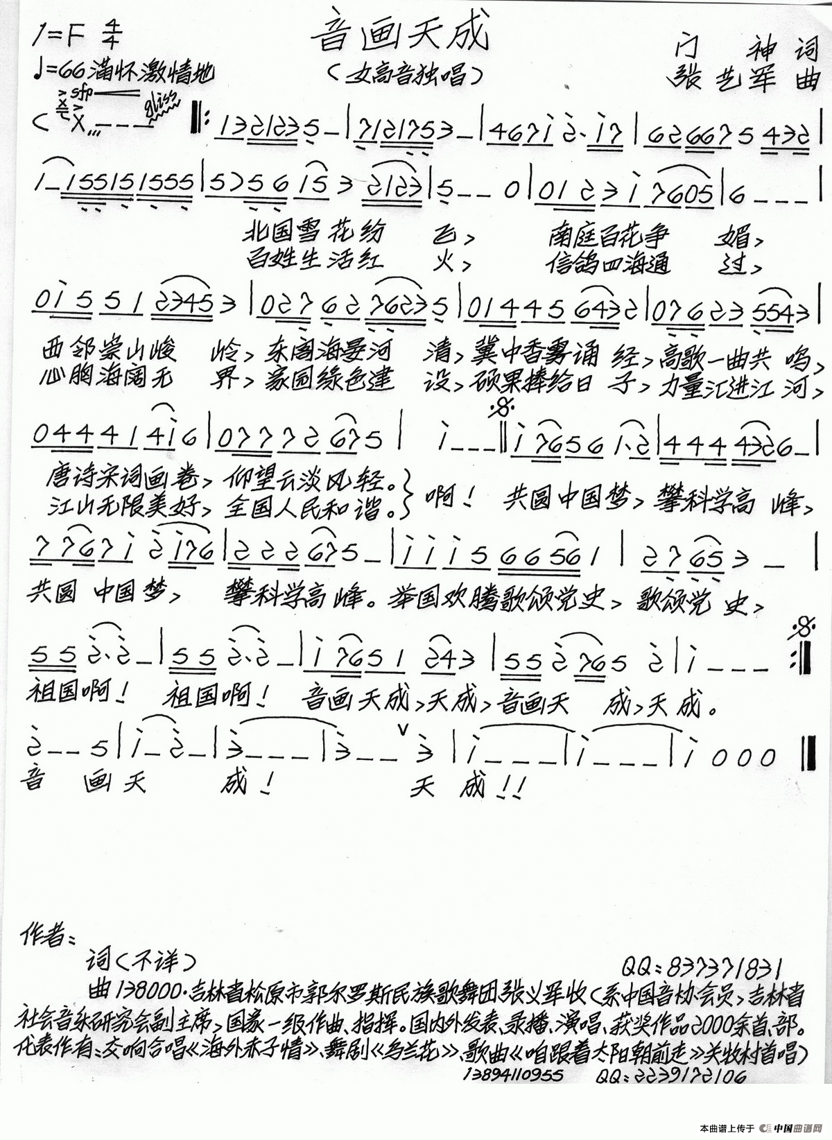 致谢:《中国曲谱网》衷心感谢作者老师馈赠原版歌谱!