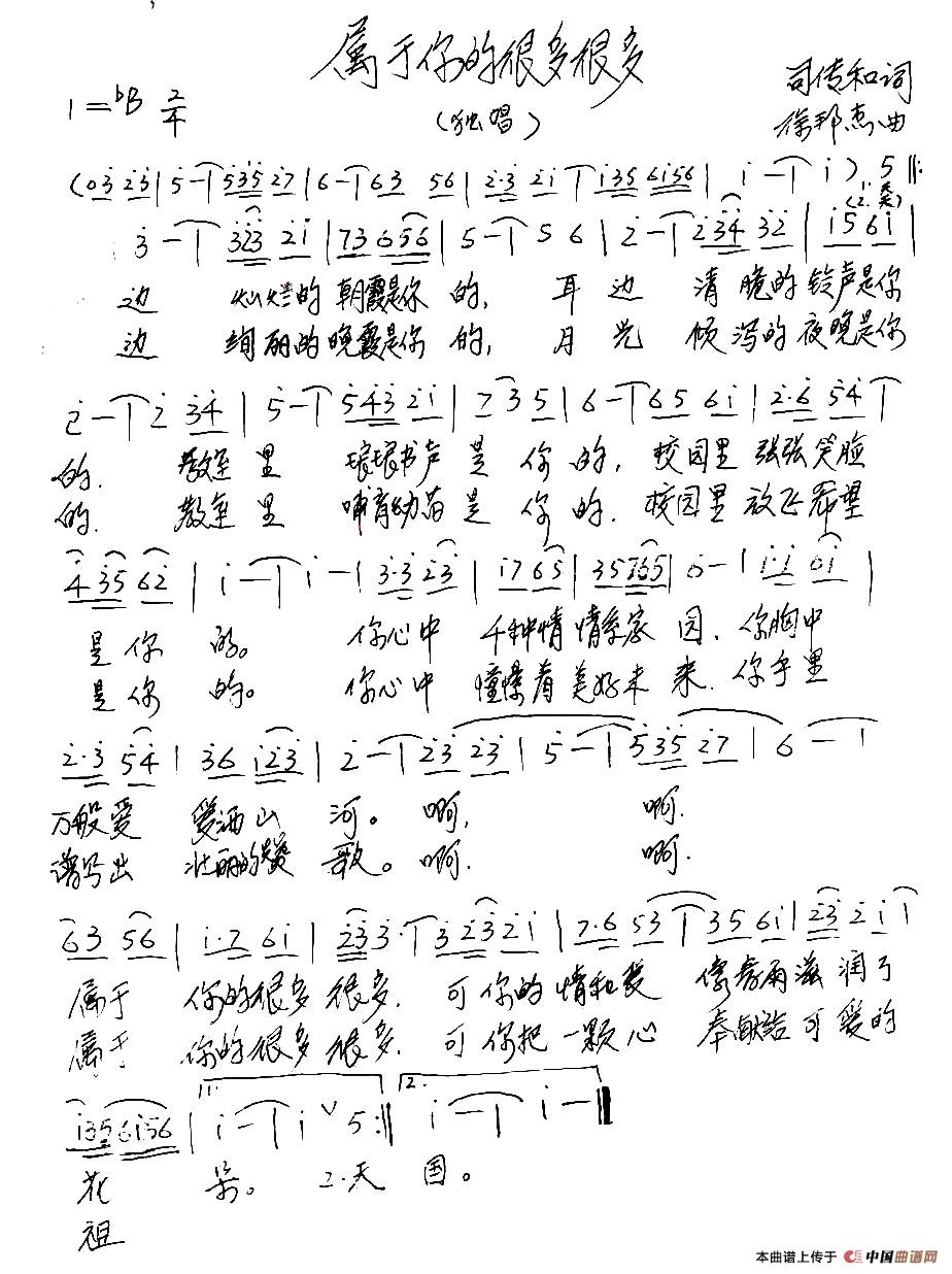 致谢:《中国曲谱网》衷心感谢作者老师馈赠原版歌谱!