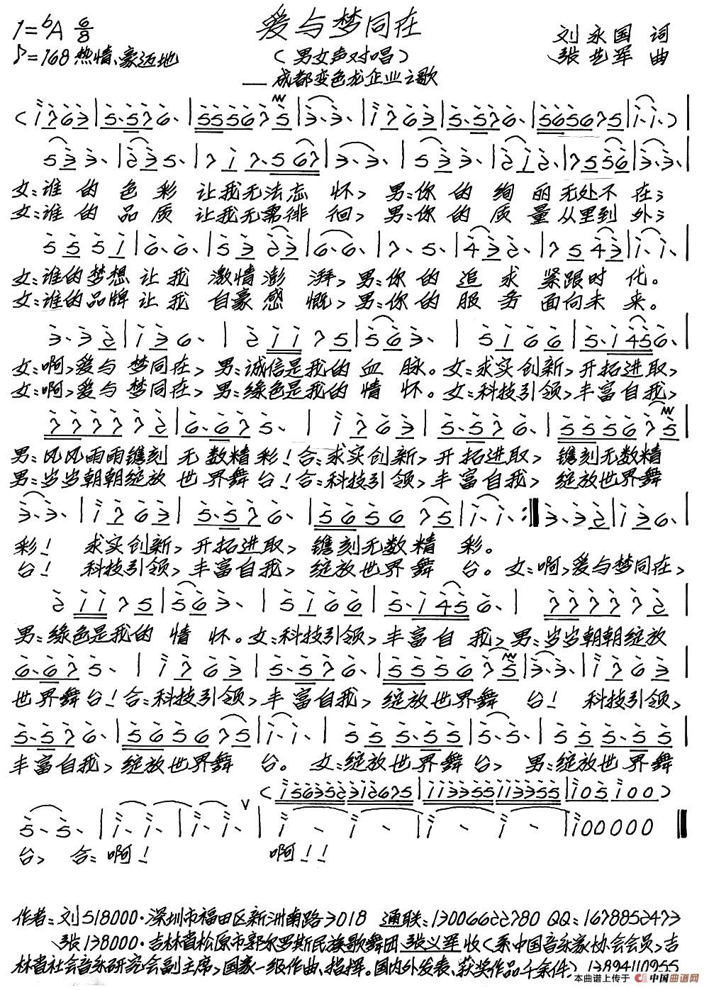 关于《爱与梦同在》曲谱的评论