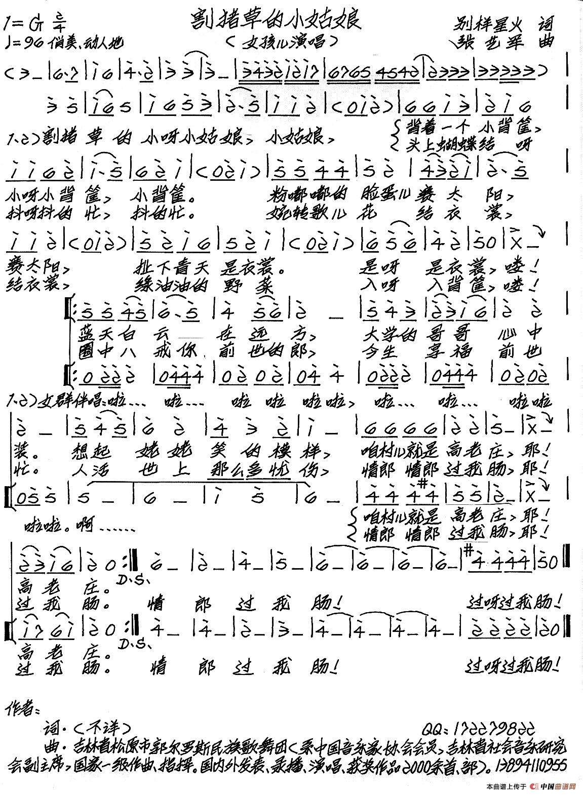 致谢:《中国曲谱网》衷心感谢作者老师馈赠原版歌谱!