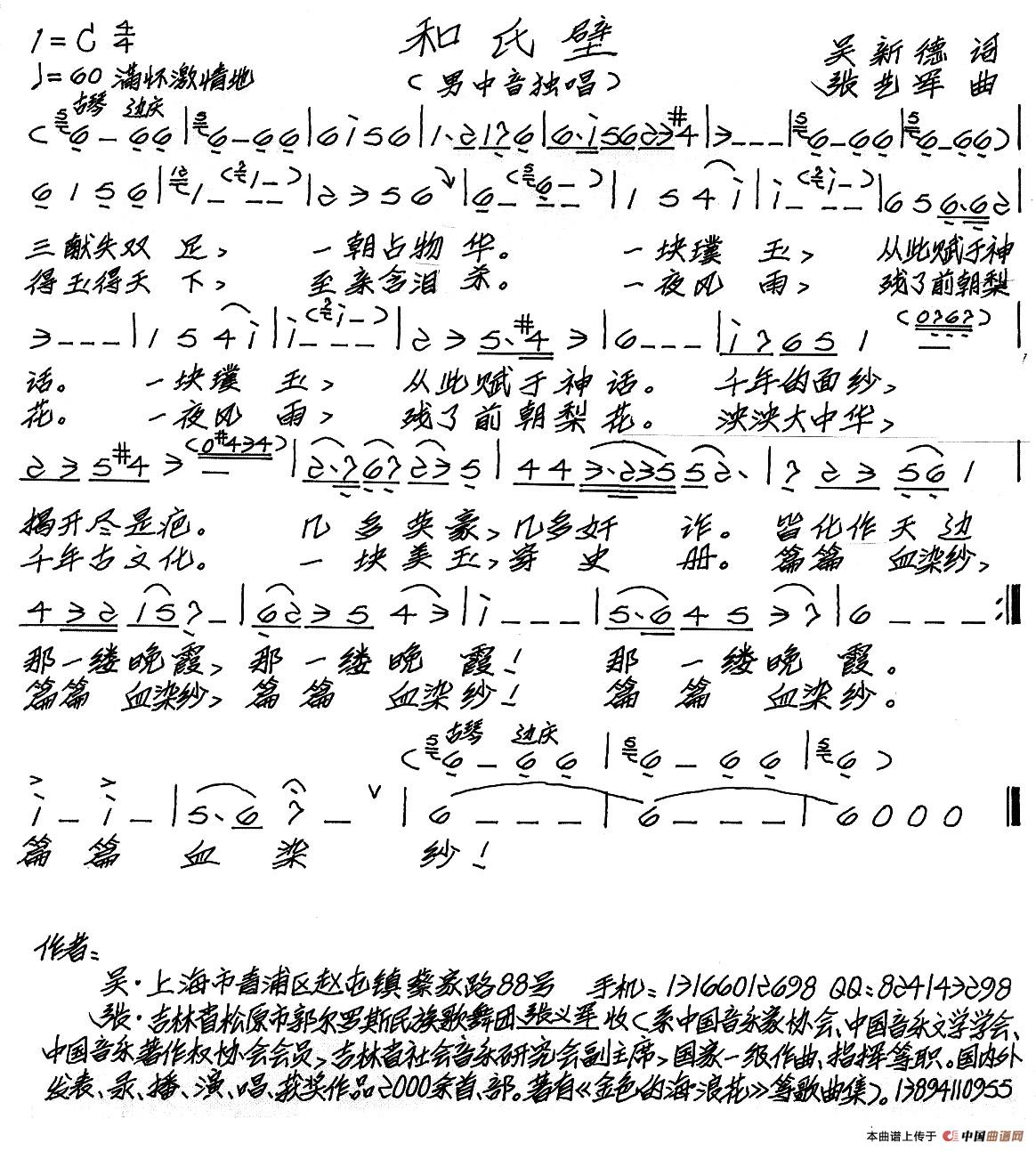 致谢:《中国曲谱网》衷心感谢作者老师馈赠原版歌谱!