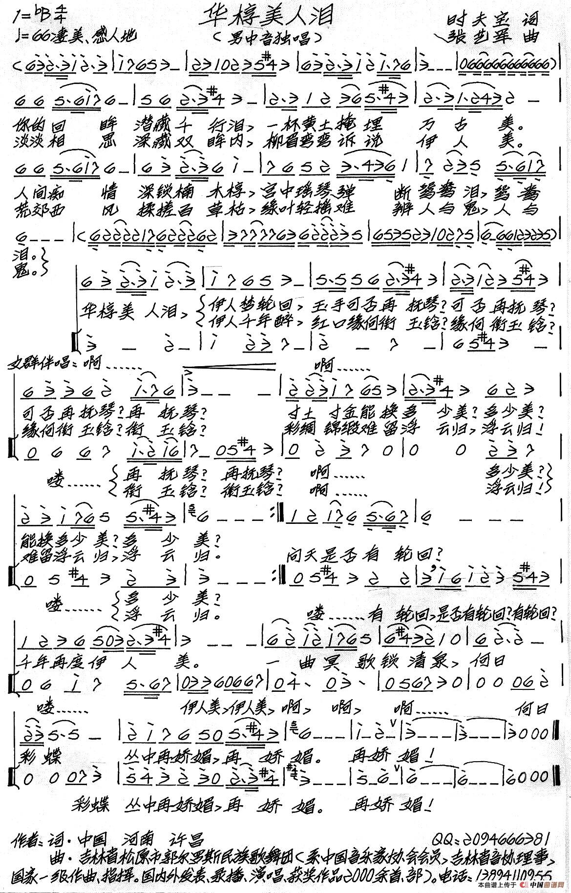 致谢:《中国曲谱网》衷心感谢作者老师馈赠原版歌谱!