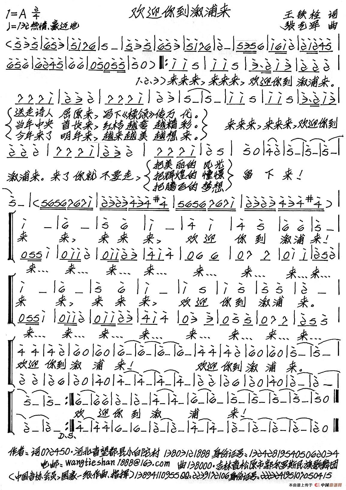 致谢:《中国曲谱网》衷心感谢作者老师馈赠原版歌谱!