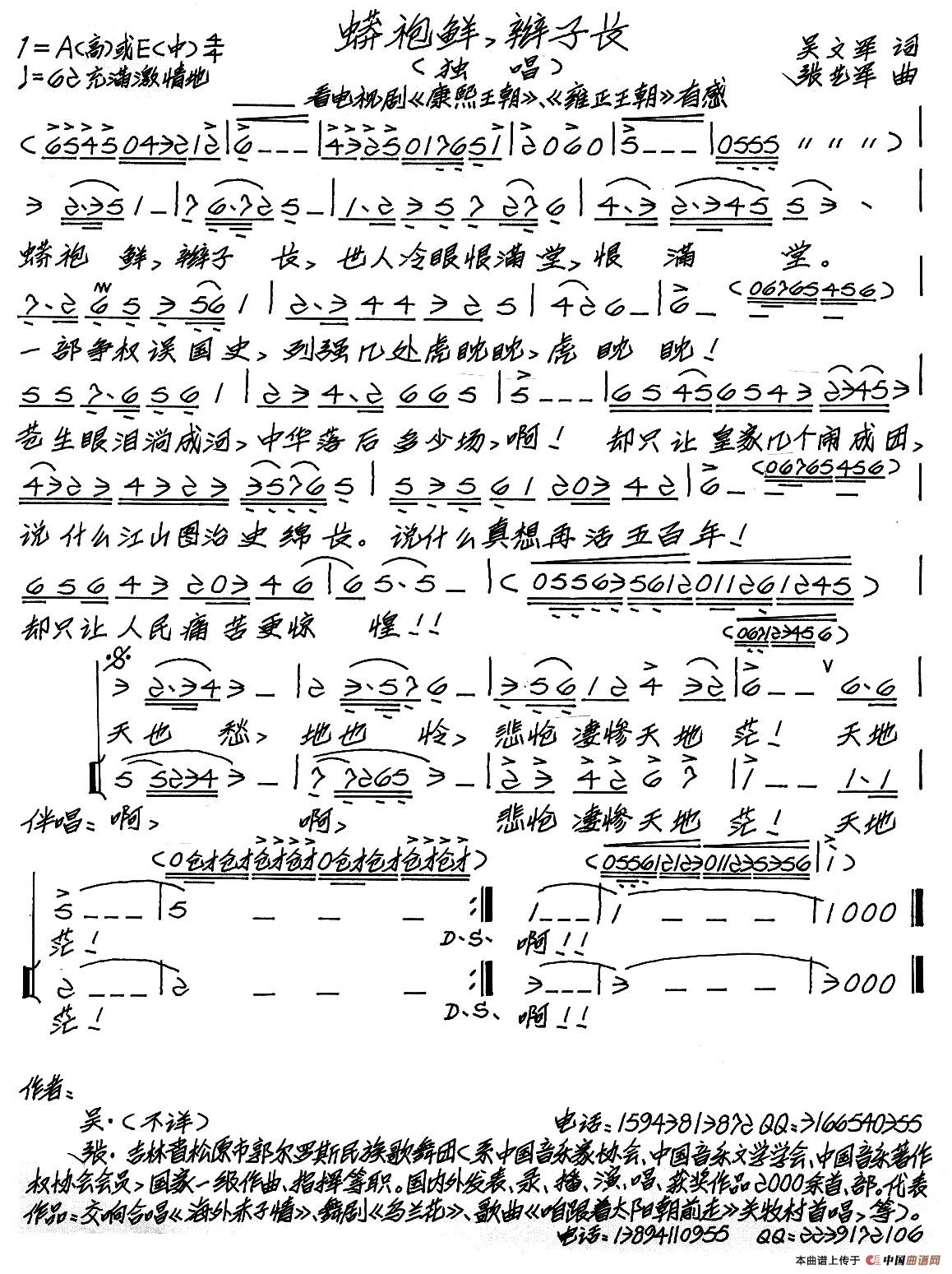 关于《蟒袍鲜,辫子长》曲谱的评论