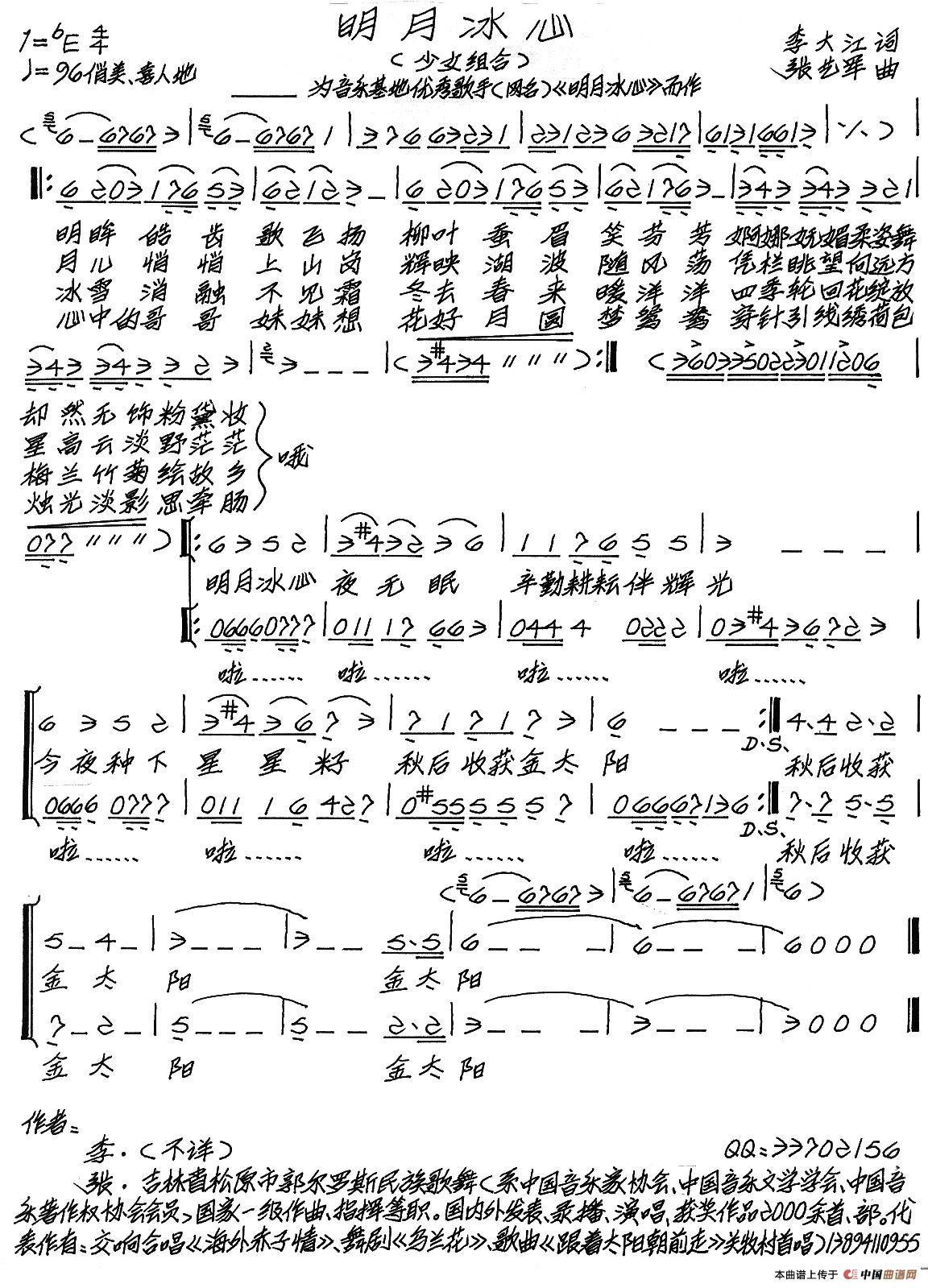 致谢:《中国曲谱网》衷心感谢作者老师馈赠原版歌谱!