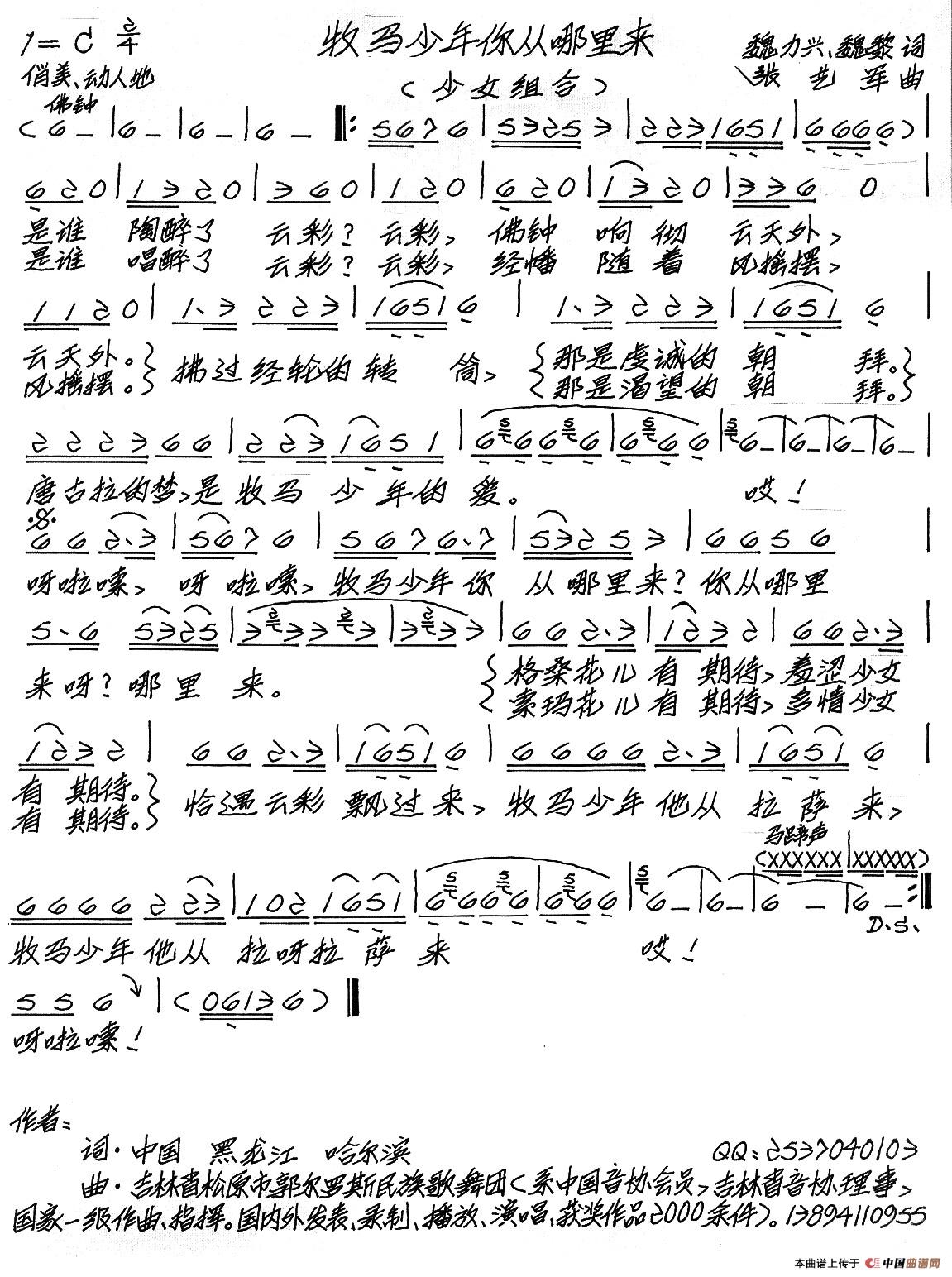 致谢:《中国曲谱网》衷心感谢作者老师馈赠原版歌谱!