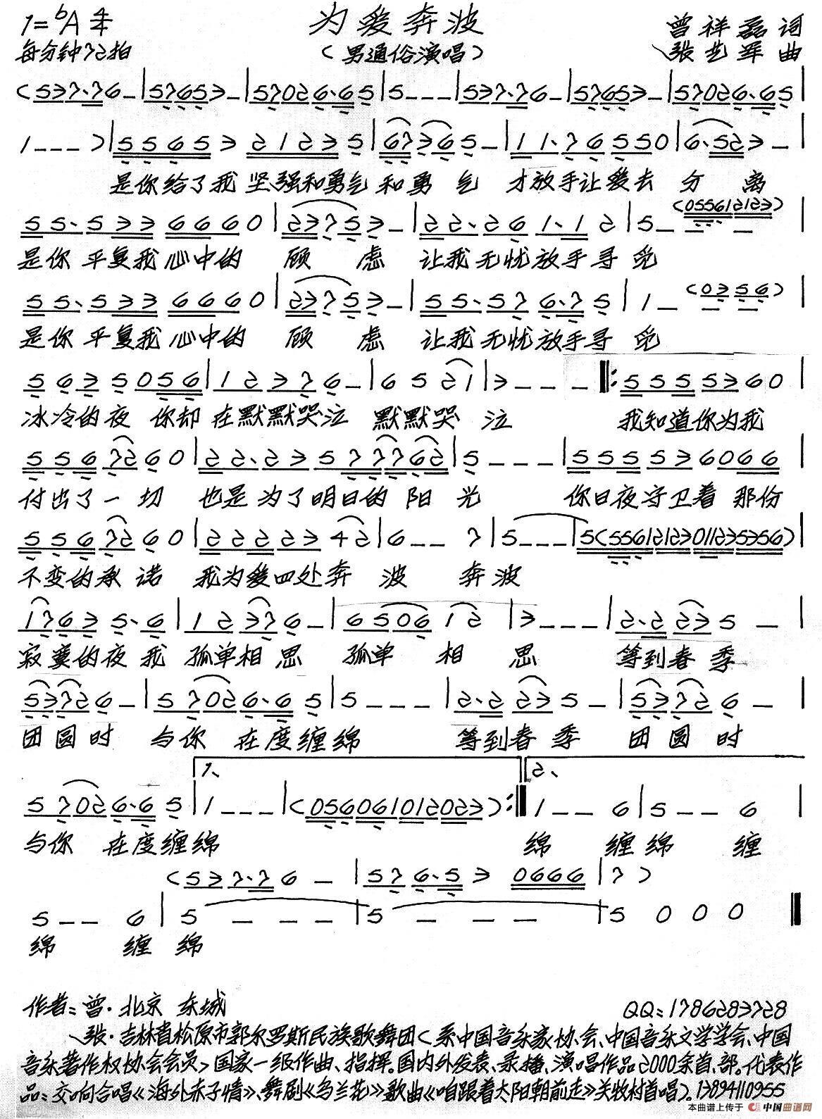 致谢:《中国曲谱网》衷心感谢作者老师馈赠原版歌谱!