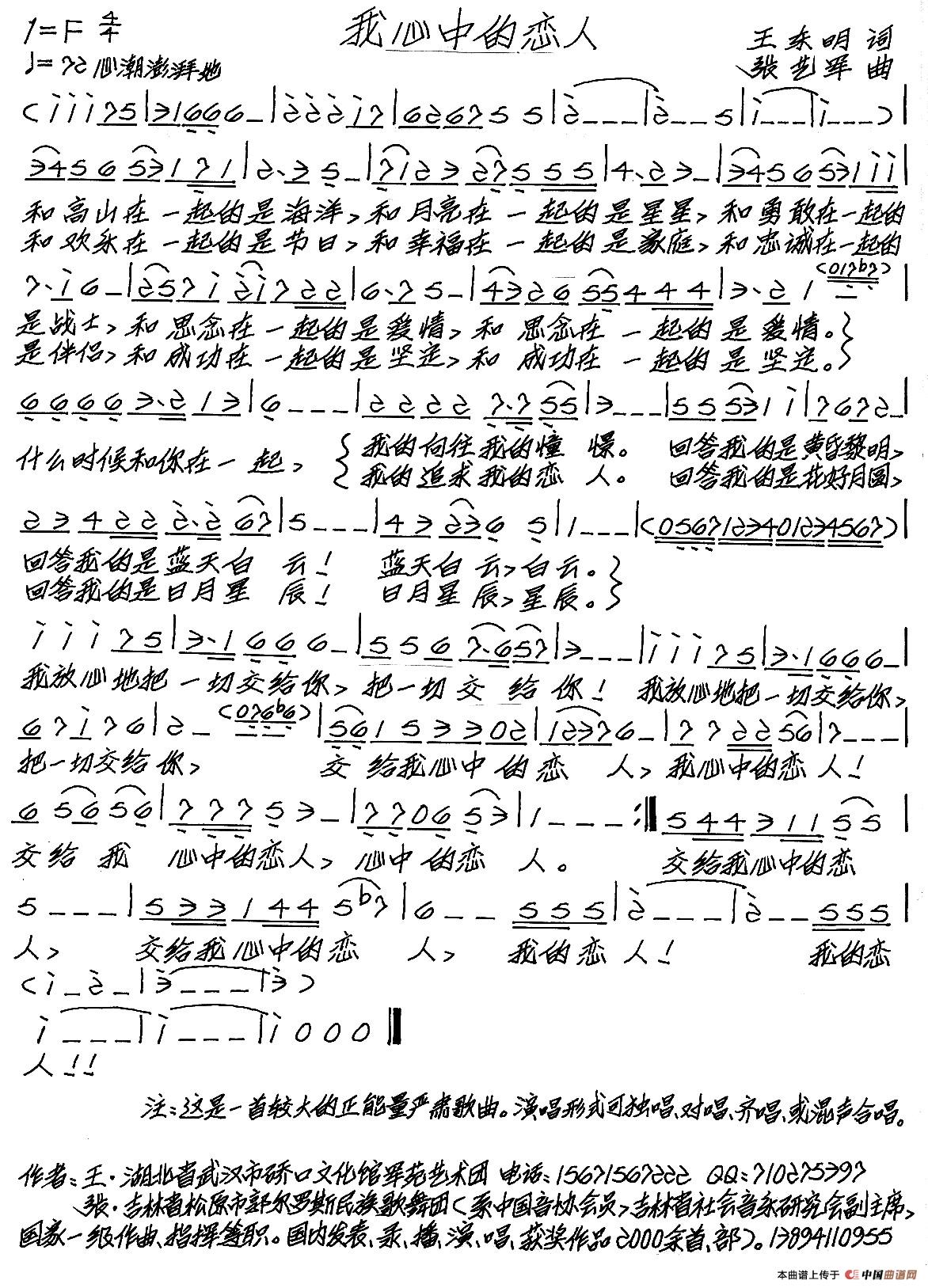 致谢:《中国曲谱网》衷心感谢作者老师馈赠原版歌谱!