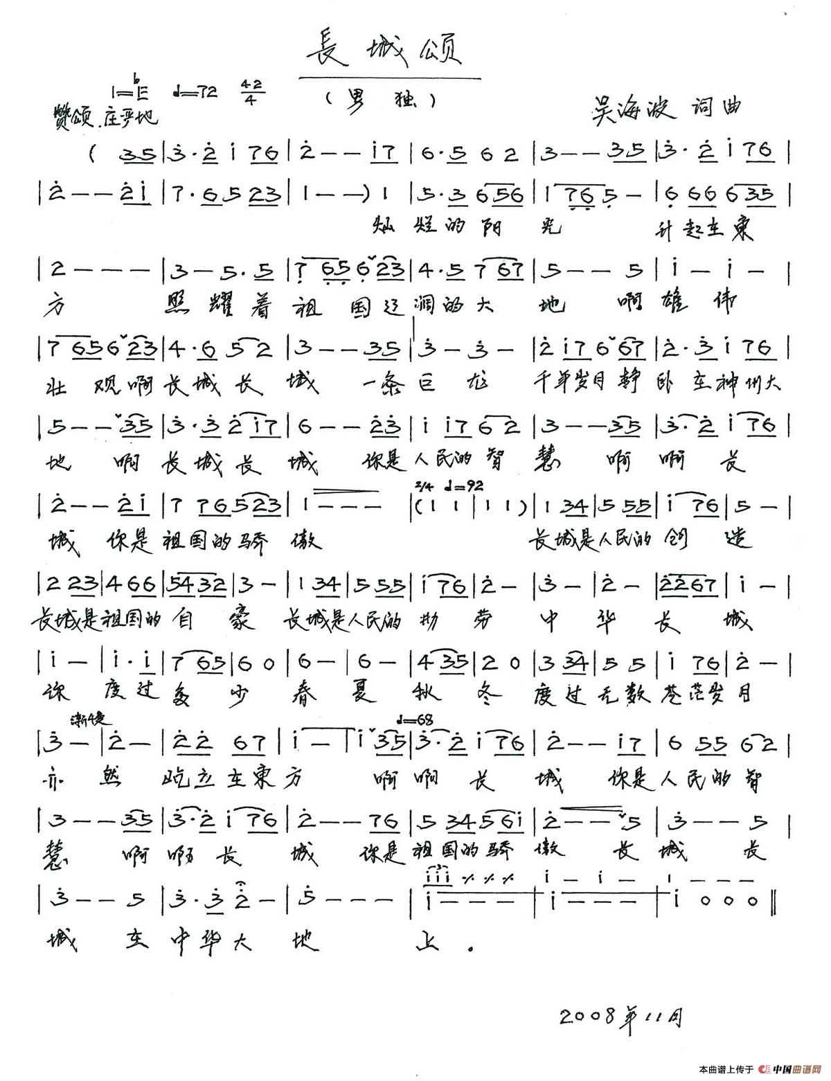 关于《长城颂》曲谱的评论