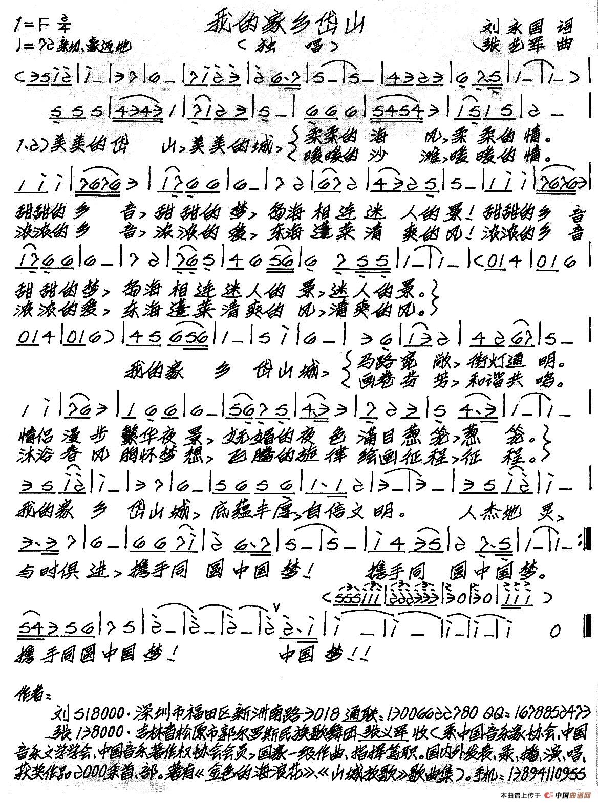 致谢:《中国曲谱网》衷心感谢作者老师馈赠原版歌谱!